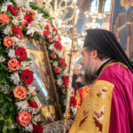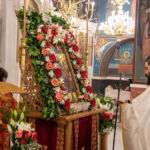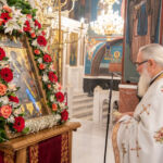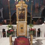 Η Παναγία μας ηθέλησε σ’ αυτούς τους δύσκολους καιρούς να ευλογήσει τον τόπο μας αποκαλύπτουσα το ιερό εικόνισμά Της, τον ορατό αυτόν σύνδεσμο με την ευσέβεια και την πίστη των πατέρων μας σ’ αυτόν τον ευλογημένο και μαρτυρικό τόπο. Πρόκειται για ένα πραγματικό αριστούργημα πίστεως, αλλά και βυζαντινής τέχνης του πρώτου μισού του 16ου αιώνος (1530), το οποίο ευρίσκεται ενώπιόν μας, με την ονομασία ‘’Πανύμνητος’’ και μας καλεί με μυστικές φωνές να αντλήσουμε χάρι, δύναμη, έμπνευση και κουράγιο από την σεπτή μορφή Της. Την ένθρονο Βασίλισσα ουρανού και γης, την πανύμνητο Θεοτόκο στην ιερά αυτή εικόνα περιστοιχίζουν τιμητικώς οι αρχιστράτηγοι Μιχαήλ και Γαβριήλ, ο τίμιος Πρόδρομος, οι άγιοι Ιεράρχες Νικόλαος και Χρυσόστομος, οι μάρτυρες Αρτέμιος, Προκόπιος, Τρύφων και οι όσιοι Σάββας ο ηγιασμένος, Πέτρος ο Αθωνίτης και Ονούφριος. Είναι πράγματι ένα αριστούργημα πίστεως και καλλιτεχνικής δημιουργίας».