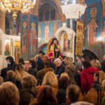 Αμέσως μετά την υποδοχή τελέσθηκε η ακολουθία του Ακαθίστου Ύμνου προς την Υπεραγία Θεοτόκο και ιερά αγρυπνία ιερουργούντος του Σεβ. Μητροπολίτου Σερρών και Νιγρίτης κ. Θεολόγου, ο οποίος ομίλησε επικαίρως προς το πολυπληθές εκκλησίασμα για την φιλόστοργη παρουσία και σκέπη της Παναγίας στην ζωή και τον προσωπικό πνευματικό μας αγώνα, τονίζοντας μεταξύ άλλων και τα εξής: