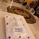 Τέλος, ο Σεβ. κ. Θεολόγος, προσέφερε μετά βαθείας συγκινήσεως το, εντός περιτέχνου αργυράς λειψανοθήκης, ιερό απότμημα εκ του χαριτοφόρου ιερού λειψάνου του αγίου Γρηγορίου του Ε’, το οποίο θα παραμείνει ως μόνιμη πηγή ευλογίας και αγιασμού των πιστών στον ιερό Μητροπολιτικό Ναό Παμμ. Ταξιαρχών Σερρών.
