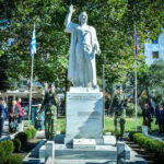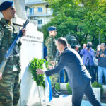 Ακολούθως, ο Σεβασμιώτατος, μαζί με τον ιερό κλήρο, τους άρχοντες και τον πιστό λαό του Θεού, μετέβησαν εν πομπή, στον χώρο της πλατείας «Ελευθερίας» της πόλεως των Σερρών. Εκεί, ενώπιον του ανδριάντα του Σερραίου ήρωος της ελληνικής Επαναστάσεως του 1821, Αρχιστρατήγου Εμμ. Παπά, εψάλη επιμνημόσυνη δέηση, κατετέθησαν στέφανοι, τηρήθηκε ενός λεπτού σιγή στην μνήμη όλων όσων θυσιάσθηκαν για την ελευθερία της Πατρίδος και εψάλη ο εθνικός μας Ύμνος.