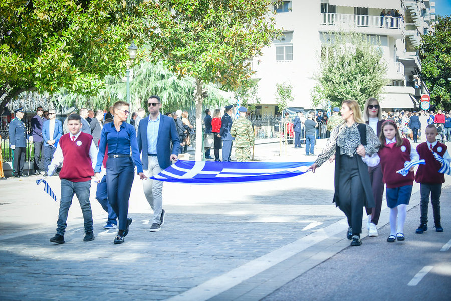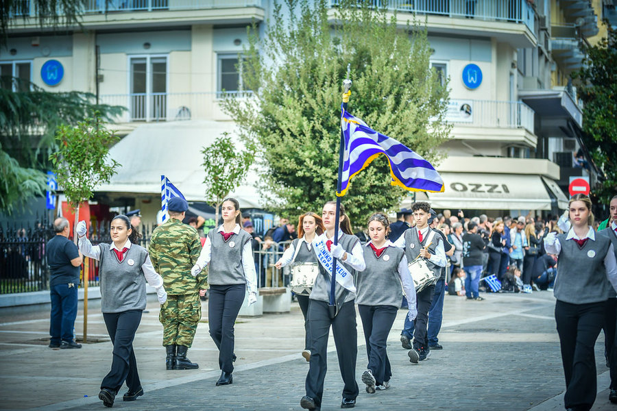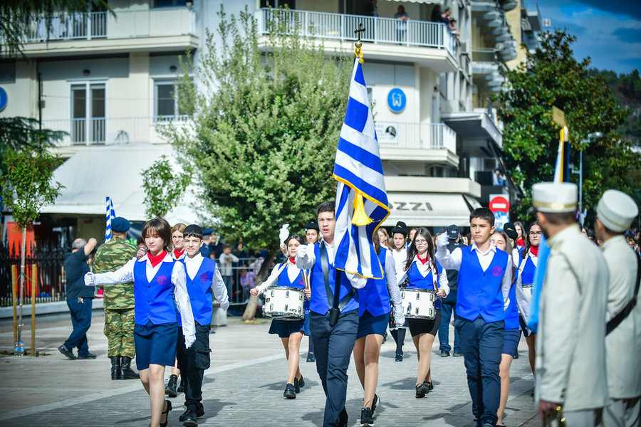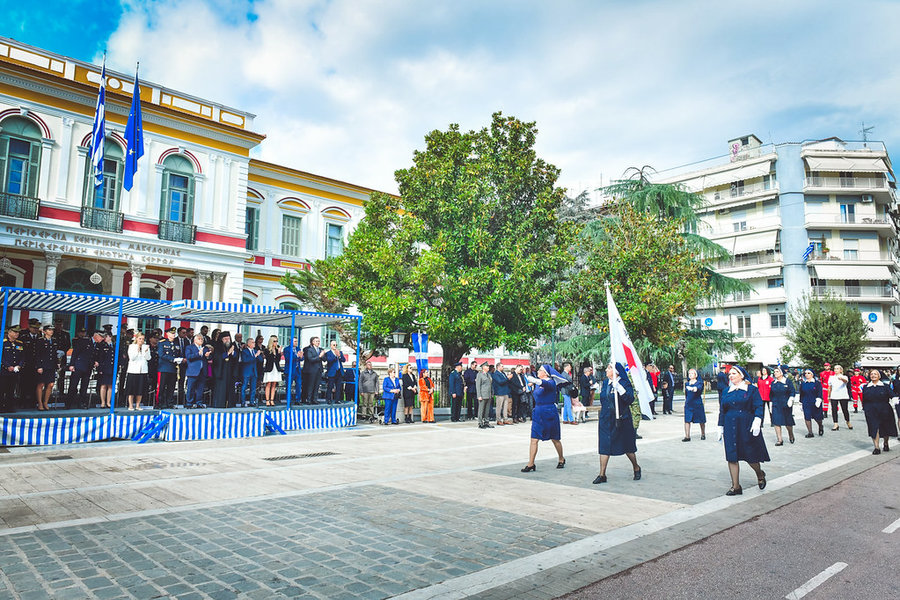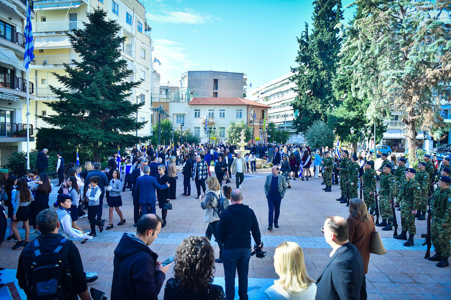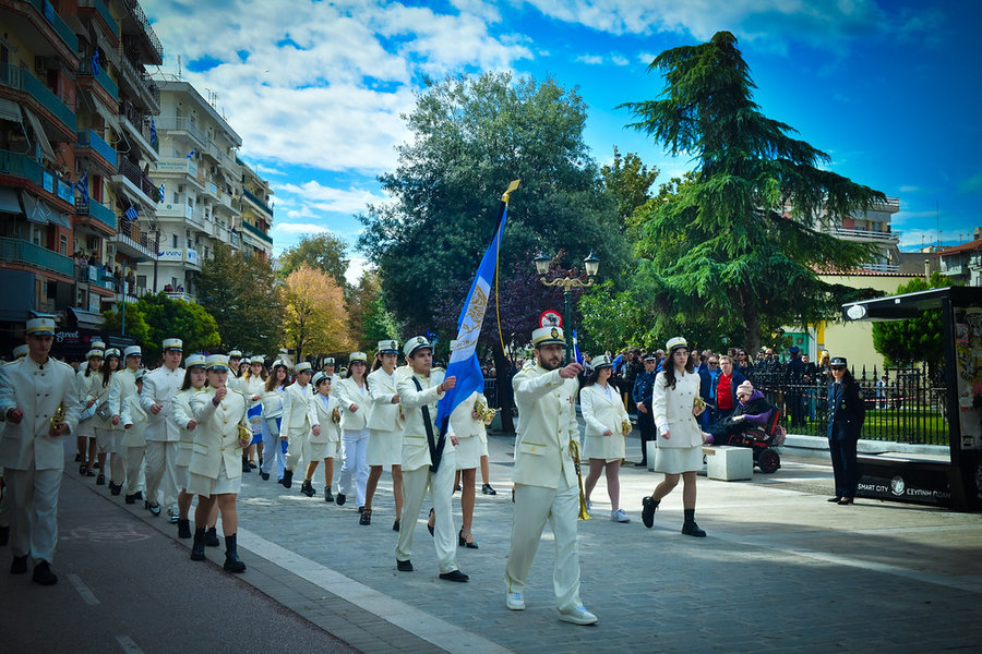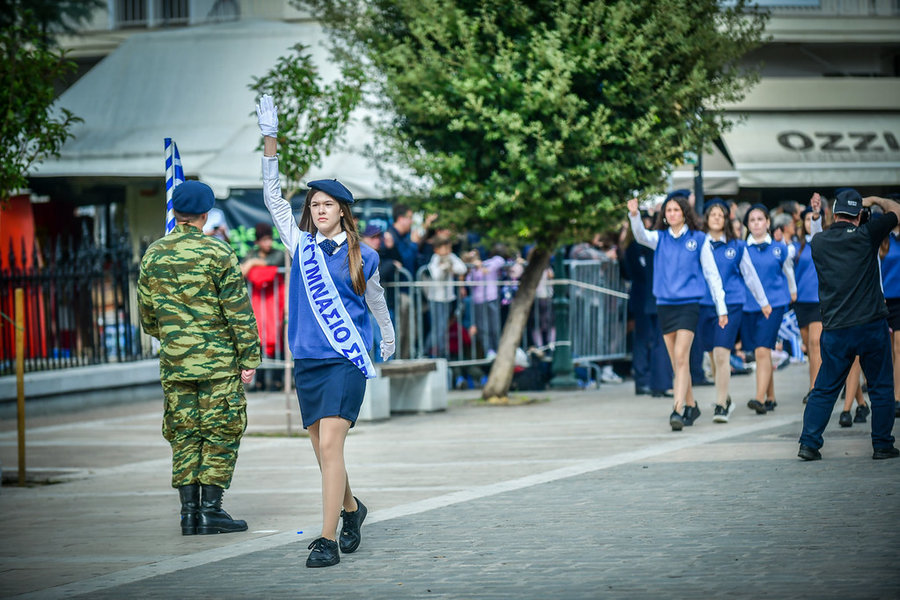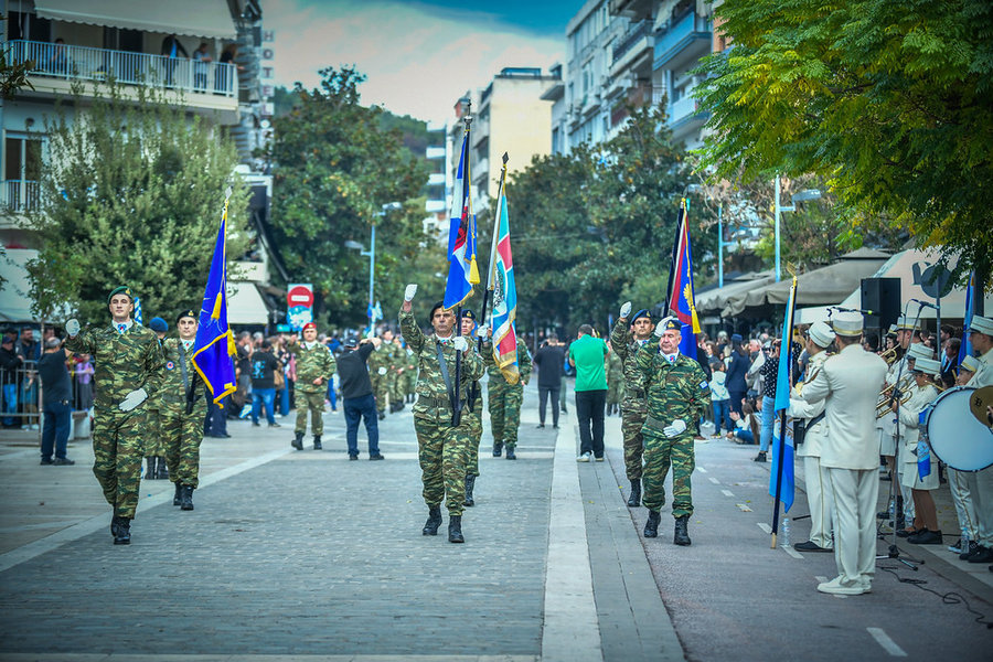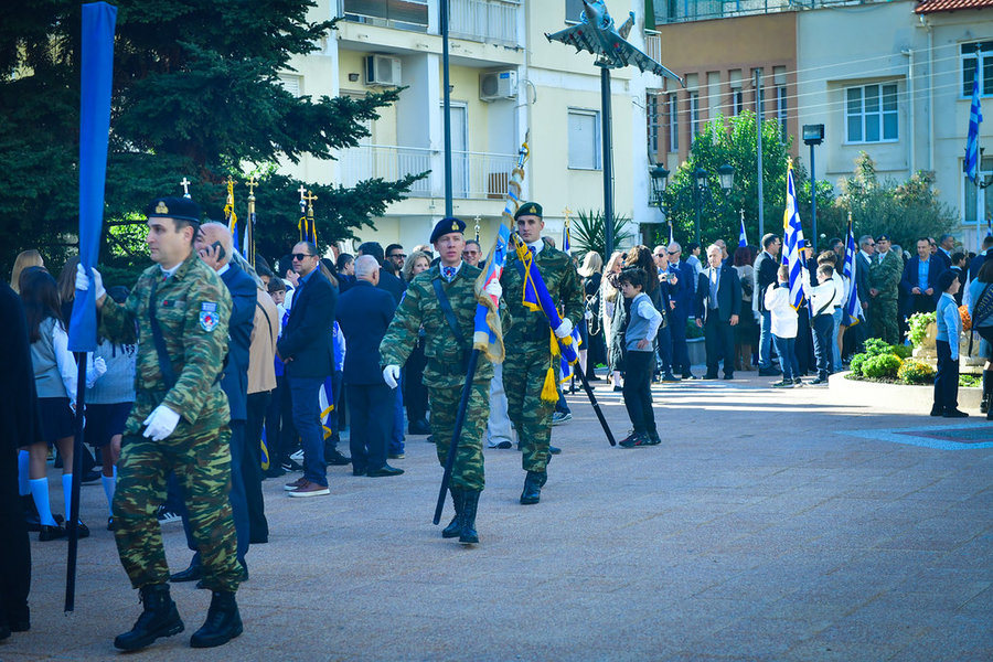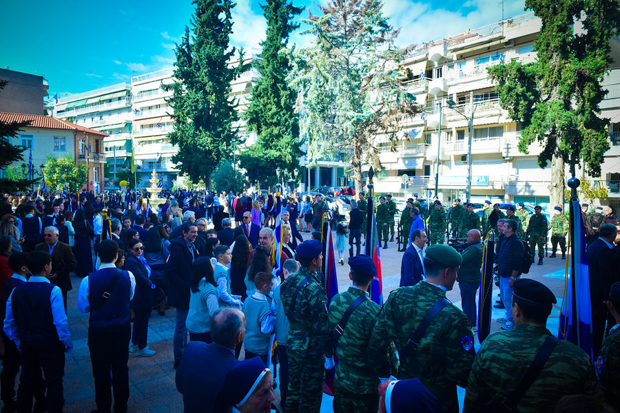 Τέλος, πραγματοποιήθηκε η καθιερωμένη μεγαλειώδης παρέλαση με αντιπροσωπείες σχολικών τμημάτων της πόλεως, πολιτιστικών συλλόγων και τμημάτων του Στρατού.