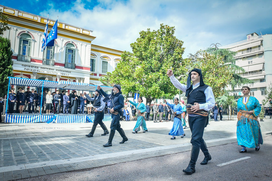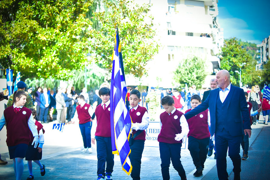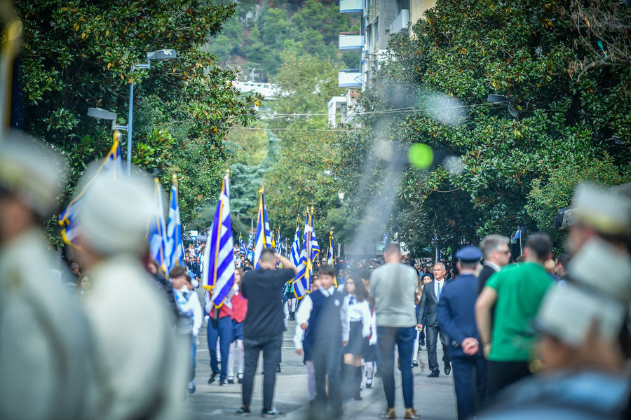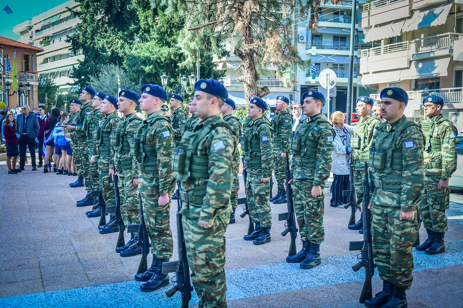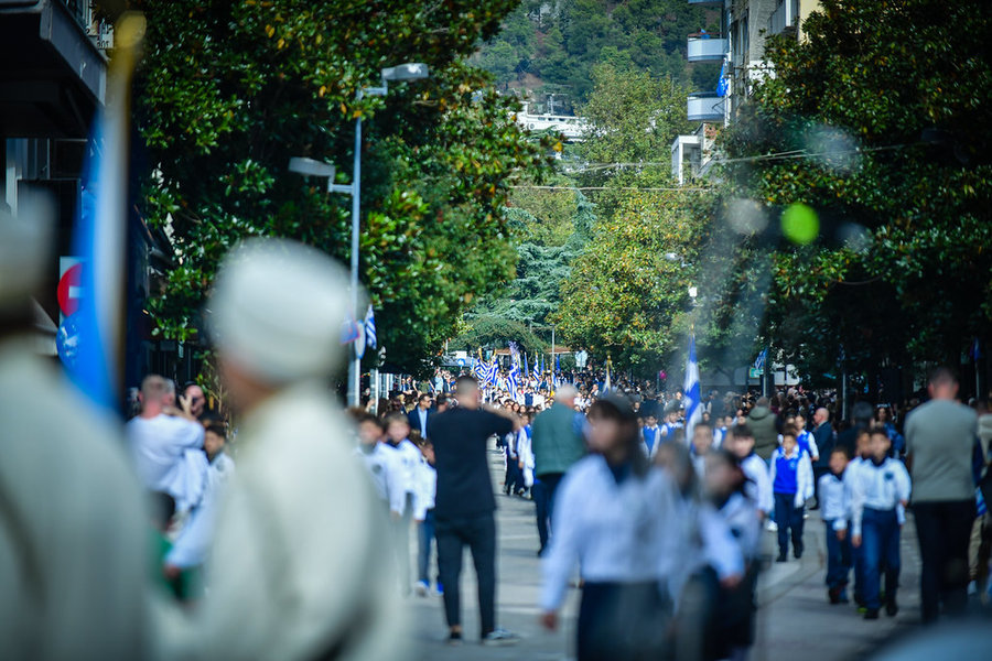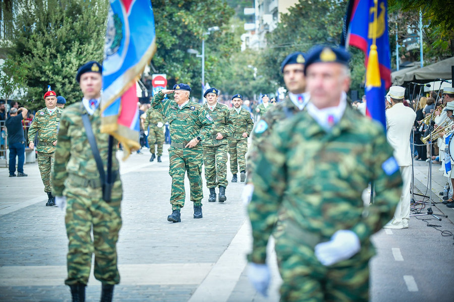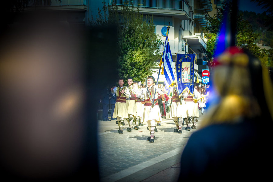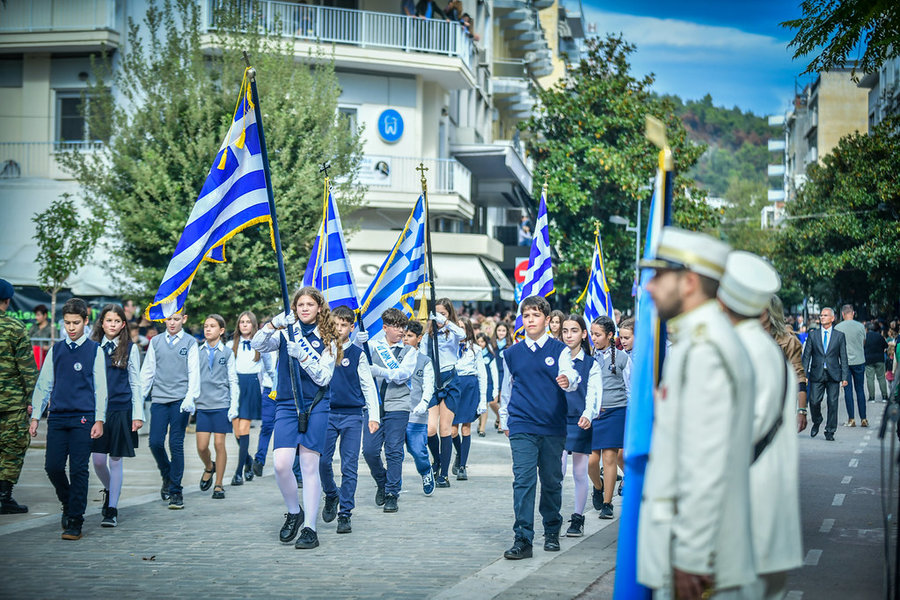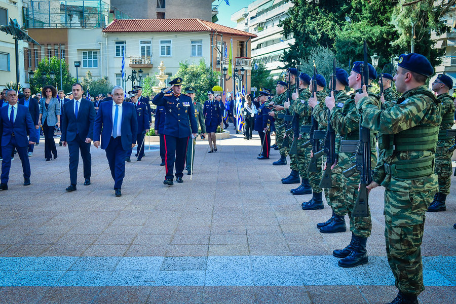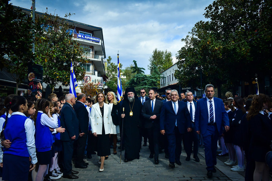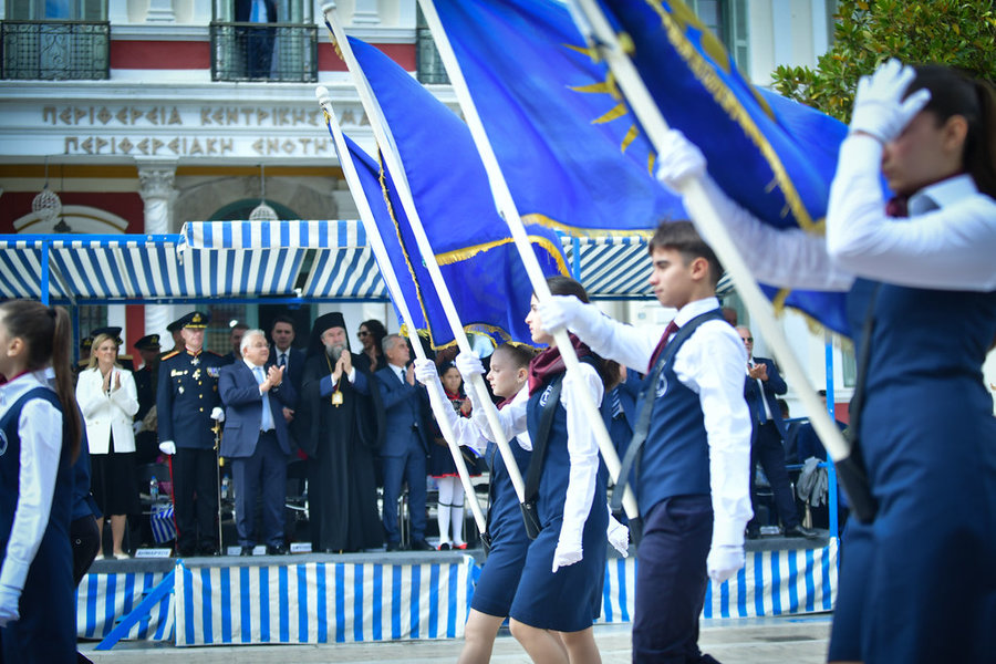 Τέλος, πραγματοποιήθηκε η καθιερωμένη μεγαλειώδης παρέλαση με αντιπροσωπείες σχολικών τμημάτων της πόλεως, πολιτιστικών συλλόγων και τμημάτων του Στρατού.
