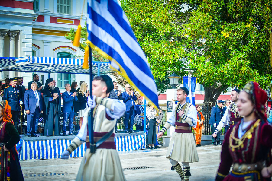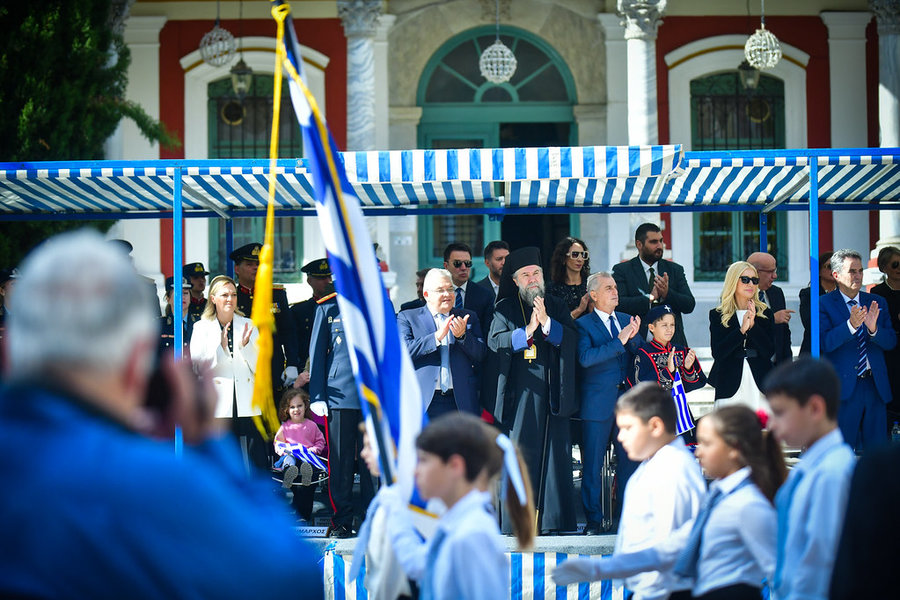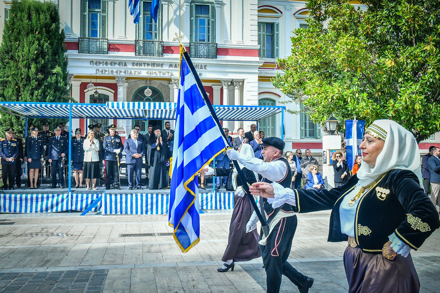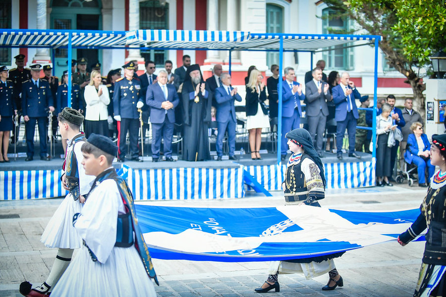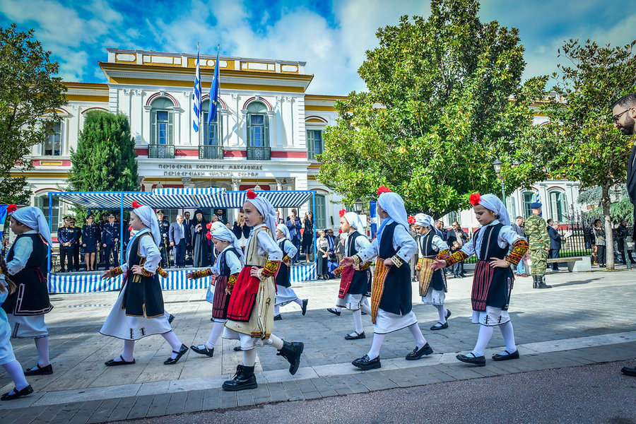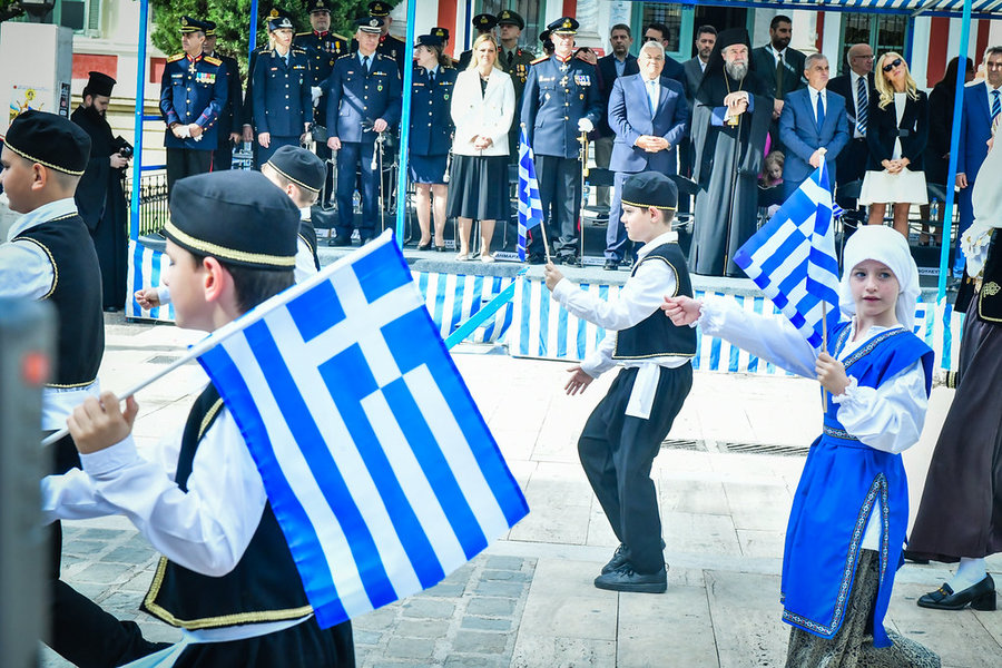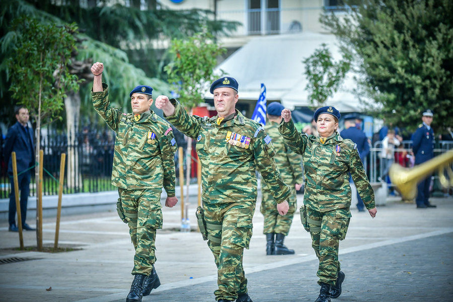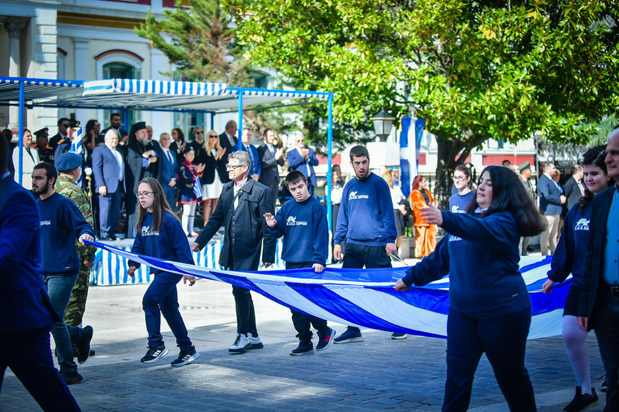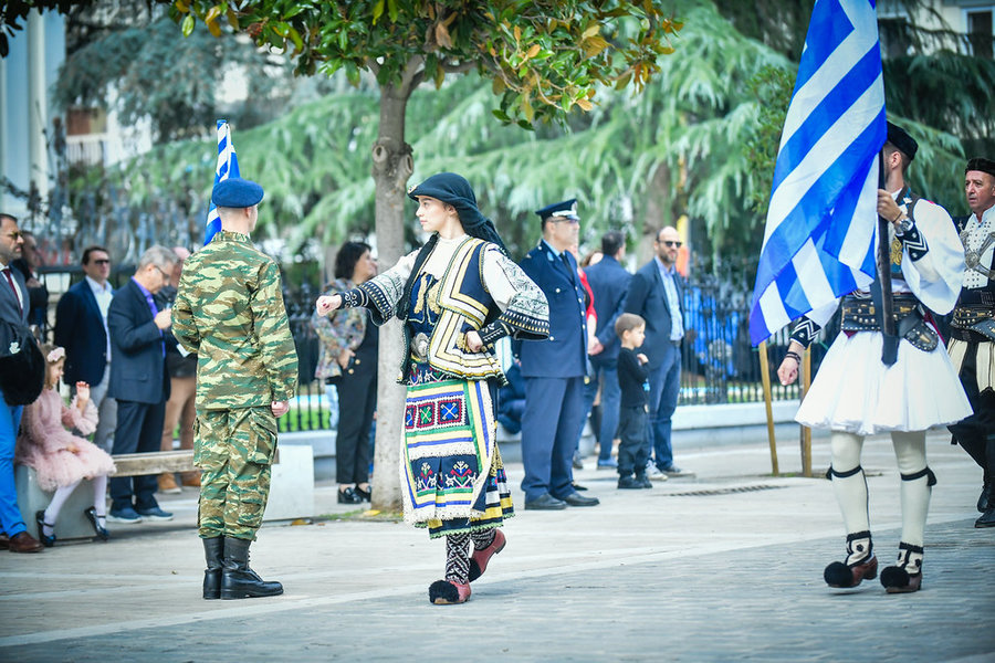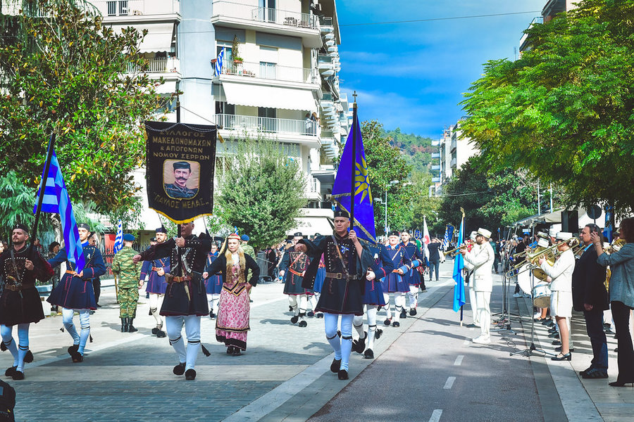 Τέλος, πραγματοποιήθηκε η καθιερωμένη μεγαλειώδης παρέλαση με αντιπροσωπείες σχολικών τμημάτων της πόλεως, πολιτιστικών συλλόγων και τμημάτων του Στρατού.
