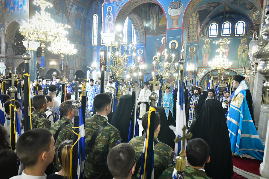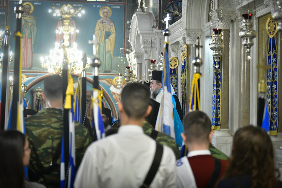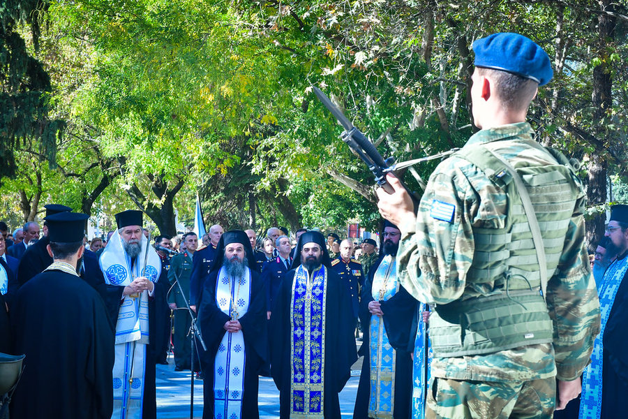 Η 28η Οκτωβρίου είναι μία ημερομηνία ορόσημο για την Πατρίδα μας, η οποία εορτάζει μία από τις ενδοξότερες σελίδες της σύγχρονης ιστορίας της, την εποποιία του 1940. Κατ’ αυτήν την ημέρα, η αγία μας Εκκλησία τιμά, επίσης, την φωτοφόρο Σκέπη της υπεραγίας Θεοτόκου, που ως υπέρμαχος Στρατηγός ενδυνάμωνε τους προγόνους μας στα πεδία των μαχών, ώστε να επιτελέσουν με συναίσθηση ευθύνης και απαράμιλλο ηρωισμό το καθήκον τους προς την Πατρίδα.