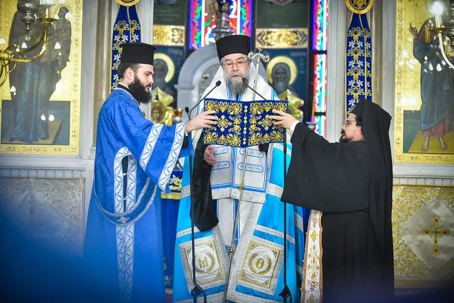 Προ της απολύσεως της Δοξολογίας, ο Σεβασμιώτατος επικαλέσθηκε πατρικώς την θεία δύναμη και την κραταιά προστασία και σκέπη της υπερευλογημένης Θεοτόκου στην πόλη και την Πατρίδα, ιδίως σήμερα, που ο κόσμος ολόκληρος αντιμετωπίζει πρωτόγνωρες προκλήσεις και δυσκολίες. Ο Σεβασμιώτατος κατακλείοντας τις ευχές του και με αφορμή την σημερινή μεγάλη εθνική επέτειο της εποποιίας του 1940, ανεμνήσθη με βαθιά συγκίνηση τον πάντοτε επίκαιρο λόγο του εθνικού μας ποιητή, Κωστή Παλαμά, ο οποίος είπε: «Κλείσε μέσα στην καρδιά σου την Ελλάδα και θα νιώσεις κάθε είδους μεγαλείο!».