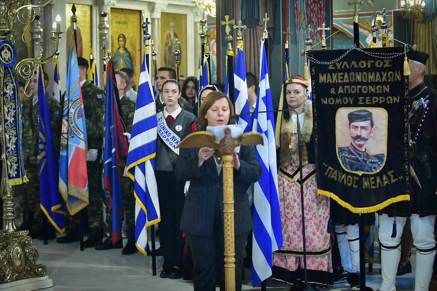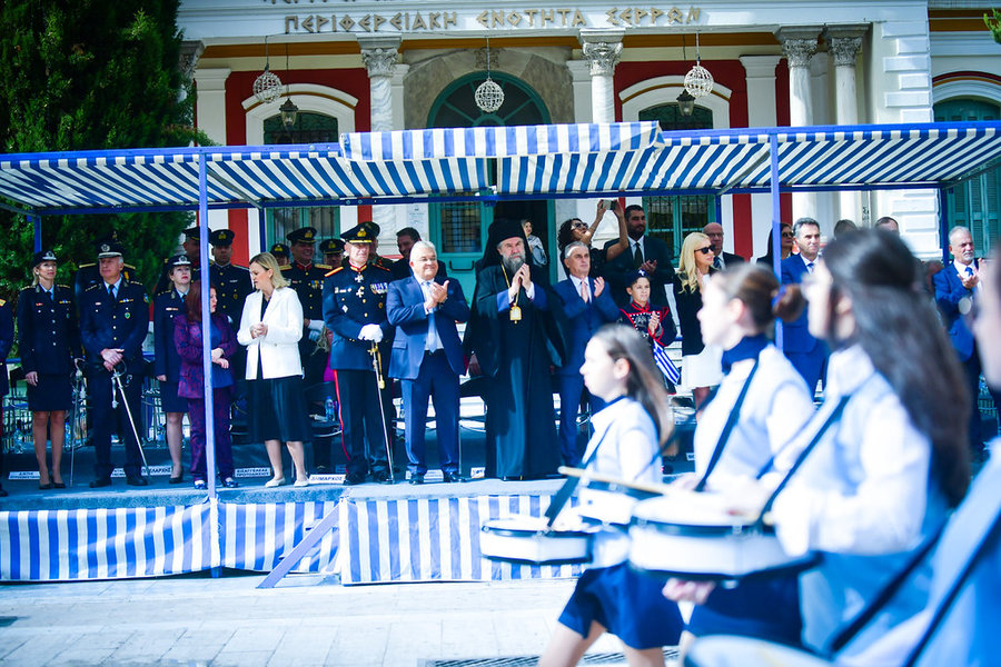 Σήμερα, Τρίτη 28 Οκτωβρίου 2025, μετά το πέρας της θ. Ιερουργίας, που τελέσθηκε στον ιερό Μητροπολιτικό Ναό Παμμ. Ταξιαρχών Σερρών, στις 11:00 το πρωί, τελέσθηκε η επίσημη Δοξολογία για το ηρωικό έπος του 1940, χοροστατήσαντος του Σεβ. Μητροπολίτου Σερρών και Νιγρίτης κ. Θεολόγου. Παρόντες, μεταξύ άλλων, ήταν και ο Υφυπουργός Παιδείας, Θρησκευμάτων και Αθλητισμού κ. Νικόλαος Παπαϊωάννου, ως εκπρόσωπος της ελληνικής Κυβερνήσεως, οι Βουλευτές του Ν. Σερρών κ. κ. Αναστάσιος Χατζηβασιλείου, Φωτεινή Αραμπατζή, Θεόφιλος Λεονταρίδης και Κων/νος Μπούμπας, ο Αντιπεριφερειάρχης Σερρών κ. Παναγιώτης Σπυρόπουλος, η Δήμαρχος Σερραίων κ. Βαρβάρα Μητλιάγκα, Περιφερειακοί και Δημοτικοί Σύμβουλοι, η Πρόεδρος του Δημοτικού Συμβουλίου Σερρών κ. Χρυσούλα Δρίγκα, ο Πρόεδρος του Δικηγορικού Συλλόγου Σερρών κ. Παναγιώτης Καρίπογλου, ο Διοικητής της 10ης Μηχανοποιημένης Ταξιαρχίας κ. Γεώργιος Λιάμπας, ο Αστυνομικός Διευθυντής Σερρών κ. Ευάγγελος Τσιώτας, ο Διοικητής της Πυροσβεστικής Υπηρεσίας Σερρών κ. Ανδρέας Θεοδωρίδης, η Πρόεδρος του Ελληνικού Ερυθρού Σταυρού Παραρτήματος Σερρών κ. Μαρία Θεοδωρίδου, οι Διευθυντές της Πρωτοβάθμιας και της Δευτεροβάθμιας Εκπαιδεύσεως Σερρών κ. κ. Ιωάννης Καραβασίλης και Δημήτριος Σωτηριάδης, αντιπροσωπείες σχολικών τμημάτων του Ν. Σερρών με τις γαλανόλευκες σημαίες, καθώς και μέλη πολιτιστικών συλλόγων με τις παραδοσιακές φορεσιές και τα λάβαρά τους, ενώ τον πανηγυρικό της ημέρας λόγο εξεφώνησε επιτυχώς η κ. Πασχαλίνα Κιννά, εκπαιδευτικός του 12ου Δημοτικού Σχολείου Σερρών.