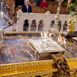 Στις 6:45 τό ἀπόγευμα τῆς ἴδιας ἡμέρας, θά πραγματοποιηθεῖ στόν ἴδιο ἱερό Ναό, ἡ ὑποδοχή τῶν ἱερῶν μαρτυρικῶν λειψάνων τοῦ πρός ἐγκαινισμόν νέου ἱεροῦ Ναοῦ καί ἐν συνεχείᾳ θά τελεσθεῖ ὁ πολυαρχιερατικός Ἑσπερινός, χοροστατοῦντος τοῦ Σεβ. Συνοδικοῦ Συνέδρου, Μητροπολίτου Καλαβρύτων καί Αἰγιαλείας κ. Ἱερωνύμου.