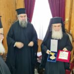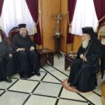 Τὴν Πέμπτη τό πρωΐ, καθηκόντως καί «ἀγαλλομένῳ ποδί» ἐπισκεφθήκαμε τὸ Ἑλληνορθόδοξο Πατριαρχεῖο Ἱεροσολύμων γιὰ τὴν συνάντηση μας μὲ τὸν Προκαθήμενο τῆς Σιωνίτιδος Ἐκκλησίας, Μακαριώτατο Πατριάρχη Ἱεροσολύμων κ. Θεόφιλο. Ὁ Μακαριώτατος, ἂνθρωπος στολισμένος μὲ πολλὰ καὶ πνευματικὰ χαρίσματα, ἡγέτης καὶ οἰακοστρόφος ἂριστος τῆς Σιωνίτιδος Ἐκκλησίας, καλωσορίζει ἐγκάρδια τοὺς Σεβασμιωτάτους Ἀρχιερείς καὶ ὅλους μας συνολικῶς καὶ εὐχαριστεῖ ταπεινὰ γιὰ τὴν ἀγάπη καὶ τὴν στήριξη πρός τήν ἁγιοταφιτικὴ ἀδελφότητα. Ἡ συνάντηση αὐτὴ ὑπῆρξε γιὰ ὅλους μας ἰδιαιτέρως ἐπικοδομητική. Θαυμάσαμε τὴν ἁπλότητα, τὴν ἀμεσότητα, τὴν ἄριστη θεολογικὴ κατάρτιση, τὴν εὐστροφία, ἀλλὰ καὶ τὴν διοικητικὴ ἱκανότητα τοῦ ἐκκλησιαστικοῦ ἀνδρός.