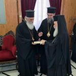 Ἐν συνεχείᾳ, ὁ Σεβ. Μητροπολίτης μας κ. Θεολόγος, διερμηνεύοντας καὶ τὰ συναισθήματα ὃλων μας, εὐχαρίστησε ἀπό καρδίας εὐγωμονούσης τὸν Μακαριώτατο Πατριάρχη καὶ τὴν περὶ αὐτὸν ἱερὰ ἀδελφότητα γιὰ τὴν ἀληθινὴ, ἀνυπόκριτη καί ἀρχοντική ἀγάπη τους, εὐχήθηκε δύναμη καὶ κουράγιο στοὺς ἀγωνιζόμενους ἁγιοταφίτες πατέρες καί ἐζήτησε τίς θεοπειθεῖς προσευχές τοῦ σεπτοῦ Προκαθημένου.
