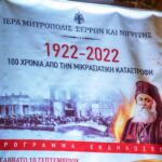 Η Ιερά Μητρόπολις Σερρών και Νιγρίτης, θέλουσα να συμβάλει στην ενδυνάμωση της ιστορικής μνήμης με αφορμή την πικρή επέτειο της συμπληρώσεως των 100 χρόνων από της Μικρασιατικής καταστροφής (1922), αφιερώνει τον μήνα Σεπτέμβριο στα γεγονότα της επετείου αυτής και ιδιαιτέρως στις ηρωϊκές και σεπτές μορφές των θυσιασθέντων αγίων Αρχιερέων, ιερέων, μοναχών και των Μικρασιατών αδελφών μας, ανδρών, γυναικών και παιδιών, που βρήκαν φρικτό θάνατο από τους Τούρκους κατά την Μικρασιατική καταστροφή τον Αύγουστο και Σεπτέμβριο του 1922. Για τον λόγο αυτό προγραμμάτισε και υλοποιεί σειρά εκδηλώσεων επετειακού και διδακτικού χαρακτήρος, ώστε να αποτελέσουν μία καλή αφορμή προσευχής, τιμής, διδαχής, γόνιμου αναστοχασμού και αναζωπυρώσεως της εθνικής μνήμης.