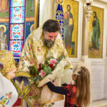 Ακολούθως, ο Πανοσιολ. Αρχιμανδρίτης π. Γαβριήλ Παλιούρας, Πρωτοσύγκελλος της Ιεράς Μητροπόλεως, απηύθυνε προσήκοντα χαριστήριο λόγο, με αφορμή την επέτειο συμπληρώσεως 20 ετών ευκλεούς Αρχιερατικής διακονίας του Σεβ. κ. Θεολόγου, 18 εξ αυτών στην πηδαλιουχία του ιστορικού, ενδόξου, αγιοτόκου και ηρωοτόκου Επισκοπικού Θρόνου της νοητής ολκάδος των Σερρών και της Νιγρίτης. Βαθέως συγκινητική υπήρξε η στιγμή κατά την οποία, η μαθήτρια δευτέρας τάξεως Δημοτικού Σχολείου, Μαρία Καρατζιά, απεσπάσθη εκ του πλήθους των πιστών και έσπευσε να προσφέρει αυθορμήτως στον Σεβ. κ. Θεολόγο, δέσμη ευωδιαστών ανθέων, δηλούσα με αυτόν τον τρόπο την αγάπη και τον σεβασμό της χριστιανικής νεολαίας των Σερρών στον πνευματικό της Πατέρα.