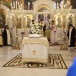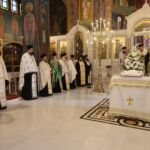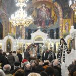 Νωρίς το απόγευμα, είχαν τοποθετηθεί στο κέντρο του ιερού Μητροπολιτικού Ναού, η θαυματουργός βυζαντινή εικόνα του Κυρίου Παντοκράτορος, προερχομένη από το χωρίο των Στεφανινών της εκκλησιαστικής επαρχίας των Σερρών και χαριτόβρυτα αποτμήματα ιερών λειψάνων, προς προσκύνηση και πνευματική ενίσχυση του μεγάλου πλήθους πιστών, που είχε κυριολεκτικώς κατακλύσει τον Μητροπολιτικό Ναό των Σερρών.