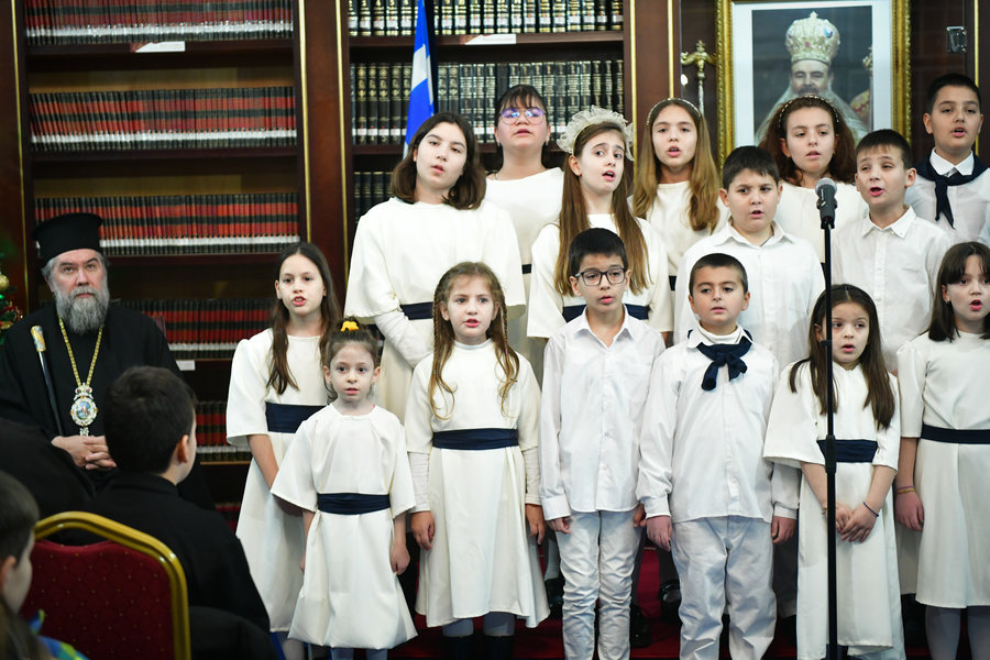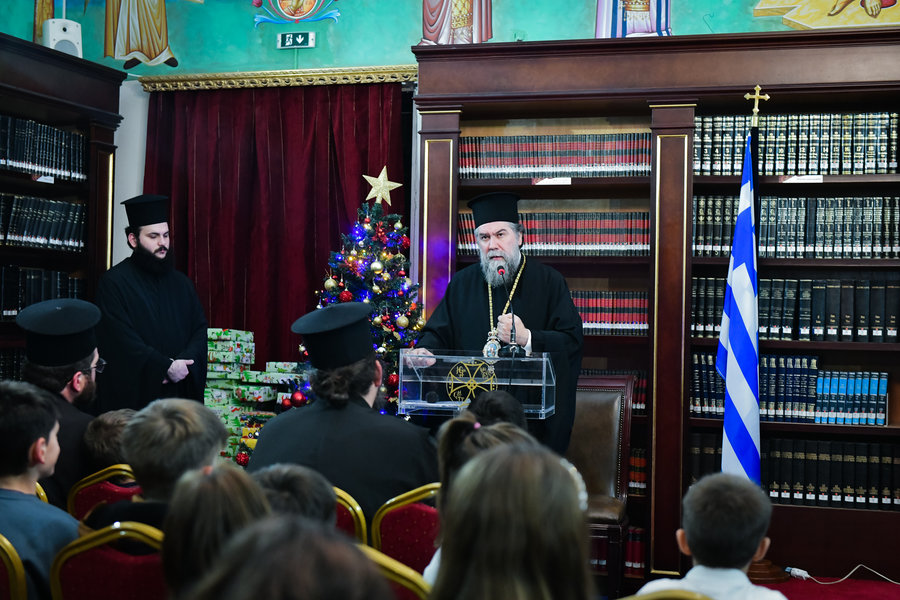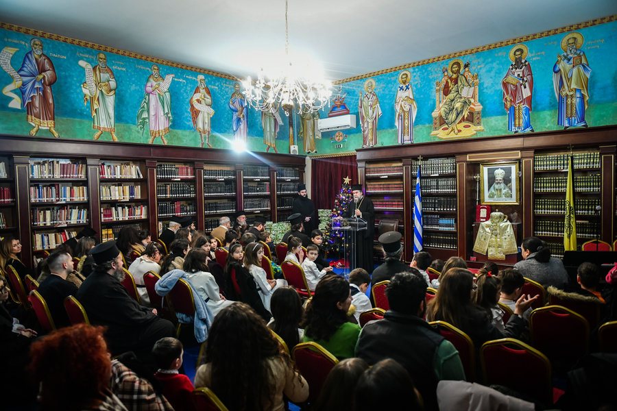 Συγκεκριμένως, στις 5:30 το απόγευμα της Τρίτης 6 Ιανουαρίου 2026, ο Σεβ. κ. Θεολόγος καλωσόρισε τους μικρούς φίλους του Χριστού μας στην εορταστική εκδήλωση, που διοργάνωσε η Εκκλησία των Σερρών στην αίθουσα «ΑΡΧΙΕΠΙΣΚΟΠΟΣ ΧΡΙΣΤΟΔΟΥΛΟΣ» της εκκλησιαστικής Βιβλιοθήκης «Μυριόβιβλος» του Μαξιμείου ιδρύματός της.