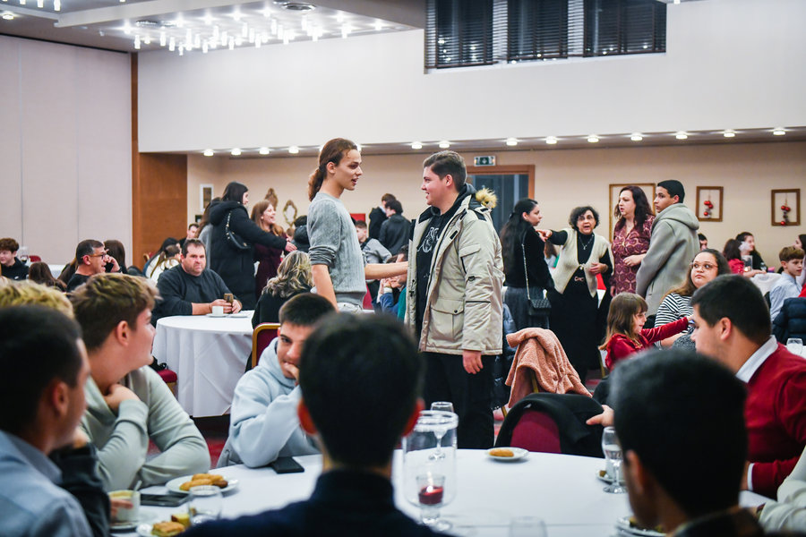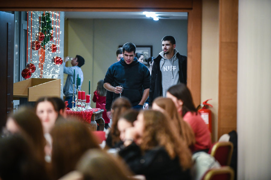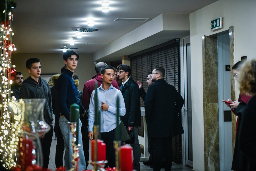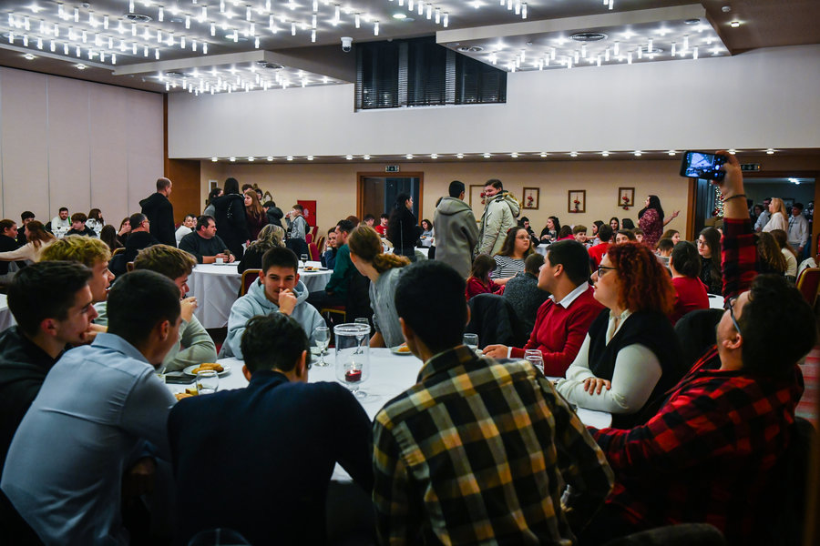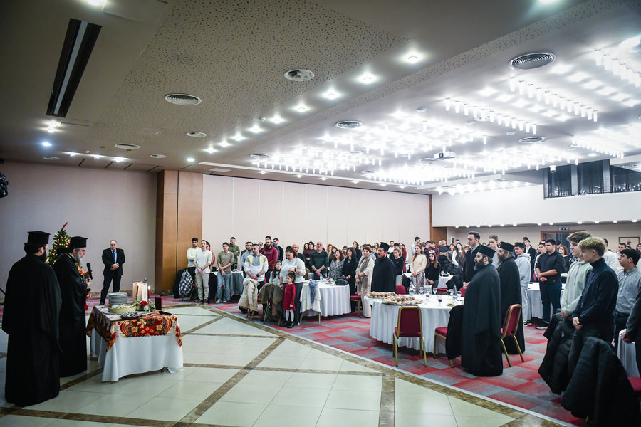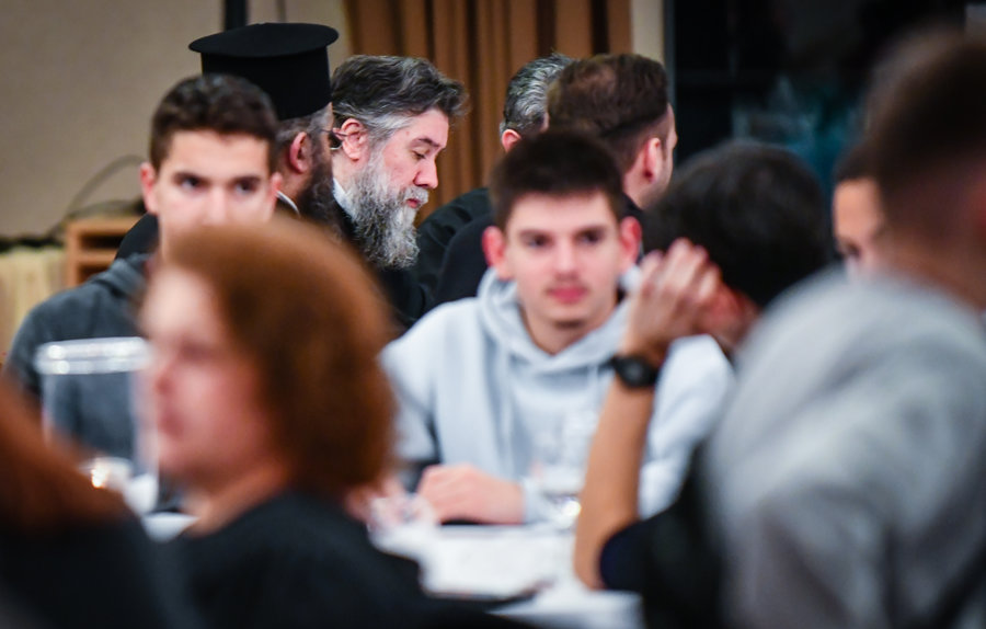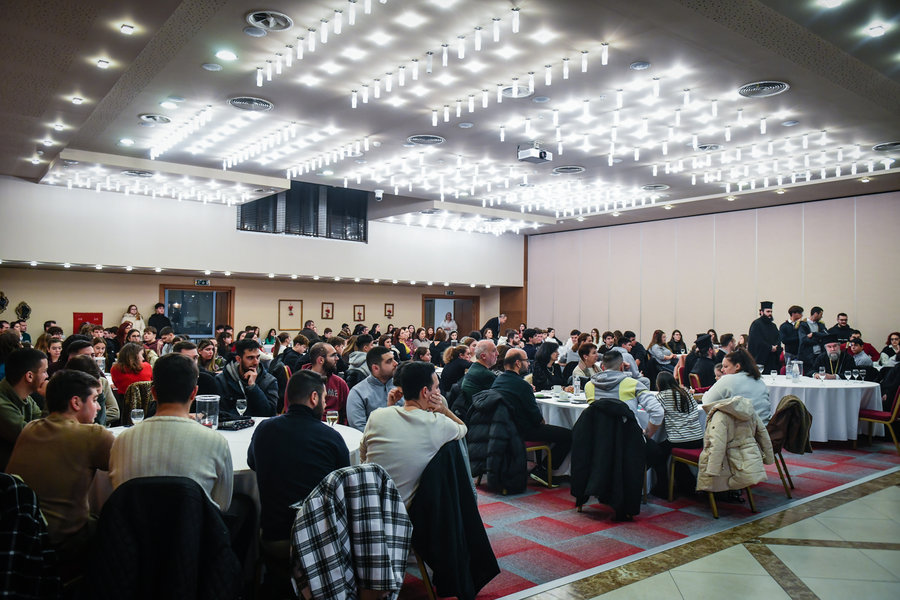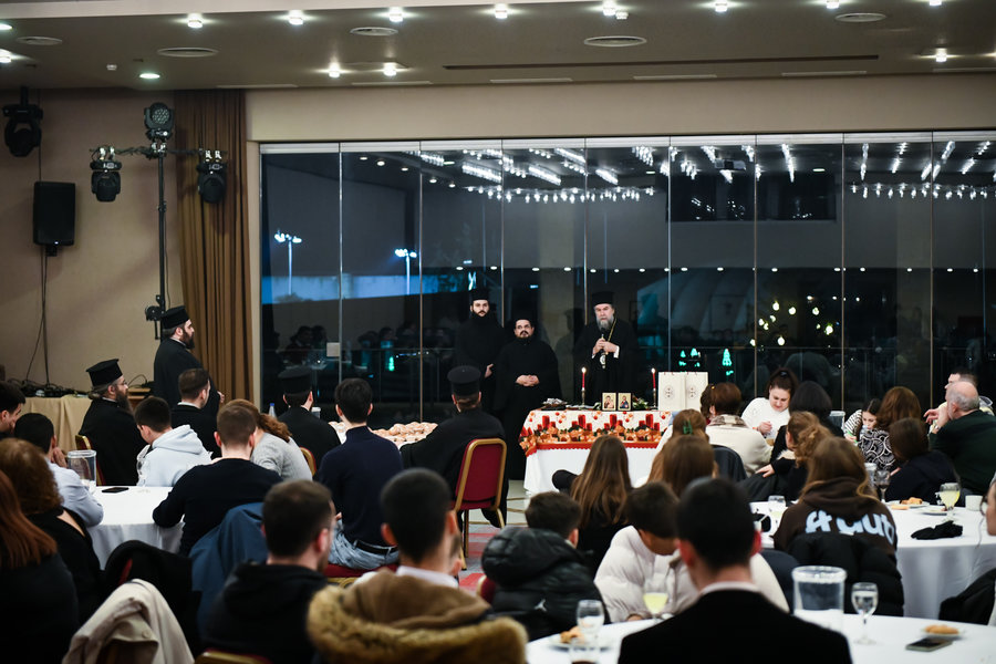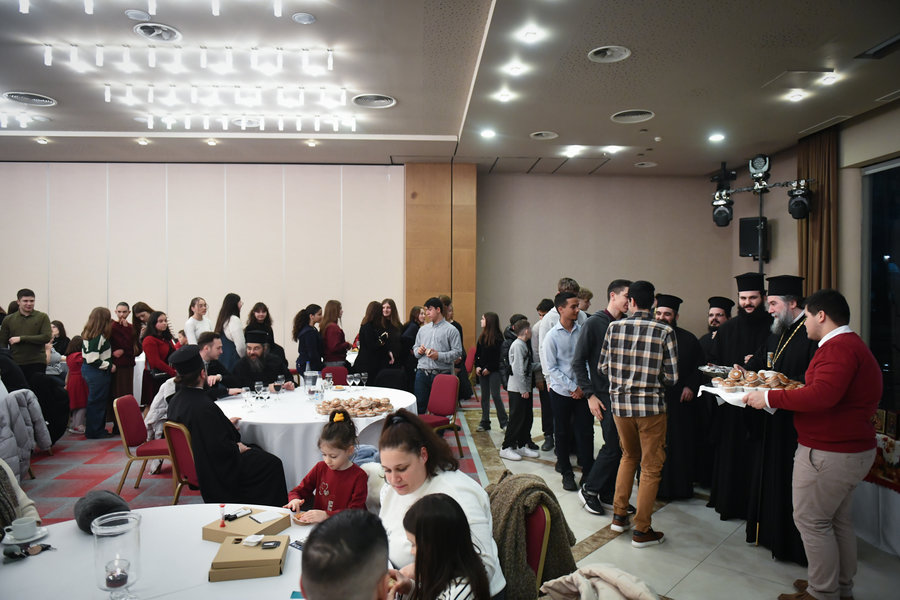 Στην συνέχεια, στις 8:00 το βράδυ, ο Σεβασμιώτατος παρευρέθηκε στην σύναξη φοιτητριών και φοιτητών – νέων, που πραγματοποιήθηκε με την φροντίδα του Γραφείου Νεότητος στο ξενοδοχείο «ELPIDA RESORT» των Σερρών. Η προσέλευση των νέων για μία ακόμη χρονιά υπήρξε εντυπωσιακή και συγκινητική.