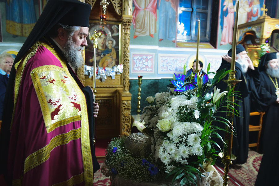Σήμερα, Τετάρτη 7 Ιανουαρίου, ημέρα κατά την οποία η αγία Μητέρα Ορθόδοξος Εκκλησία μας τιμά λειτουργικώς την ιερά Σύναξη του Αγ. Προφήτου, Προδρόμου και Βαπτιστού Ιωάννου, ο Σεβ. κ. Θεολόγος ιερούργησε στο εορτάζον ομώνυμο μετοχιακό Παρεκκλήσιο της παλαιφάτου Προδρομικής μάνδρας στην πόλη των Σερρών, ενώ αφ’ εσπέρας της εορτής, Τρίτη 6 Ιανουαρίου, στις 6:30 το απόγευμα, χοροστάτησε στον πανηγυρικό Εσπερινό, που τελέσθηκε στην εορτάζουσα ιερά Μονή Αγ. Παρασκευής Σερρών, όπου, από μερικών χρόνων φυλάσσεται, ως τιμαλφέστατος πνευματικός θησαυρός απότμημα από την αγία Κάρα του Τιμ. Προδρόμου. Το σπανιώτατο αυτό τιμιοπροδρομικό λείψανο δωρήθηκε επισήμως στην Εκκλησία των Σερρών, από τον Μακ. Πατριάρχη Ιεροσολύμων κ. Θεόφιλο προς μόνιμη ευλογία και αγιασμό.
