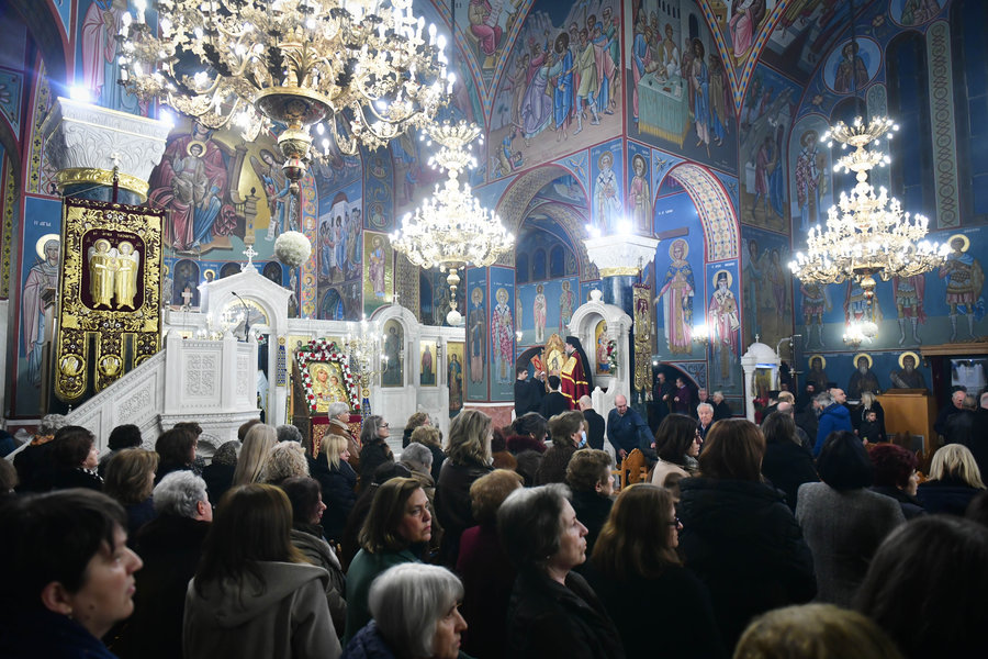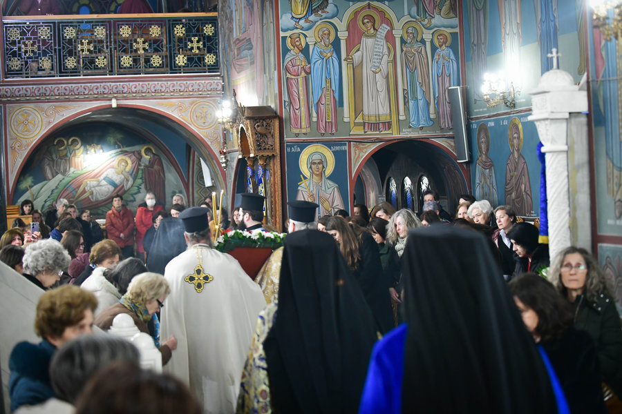 Συγκεκριμένως, την Κυριακή 1 Φεβρουαρίου 2026, στις 6:00 το απόγευμα, στον ως είρηται εορτάζοντα Μητροπολιτικό Ναό τελέσθηκε ο μέγας πανηγυρικός Εσπερινός, χοροστατήσαντος του Σεβ. Μητροπολίτου Σερρών και Νιγρίτης κ. Θεολόγου. Παρόντες ήταν ο Βουλευτής Ν. Σερρών κ. Θεόφιλος Λεονταρίδης, η Δήμαρχος Σερραίων κ. Βαρβάρα Μητλιάγκα, ο Διοικητής της 10ης Μηχανοποιημένης Ταξιαρχίας κ. Φίλιππος Γιαλαμάς, καθώς και μέγα πλήθος φιλοπάρθενων χριστιανών.