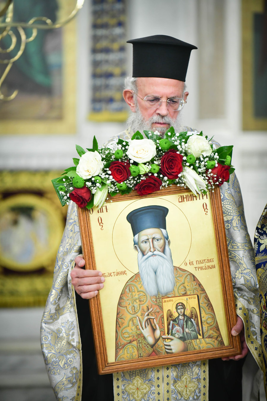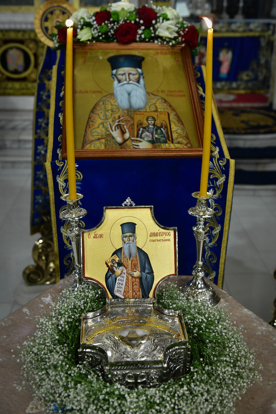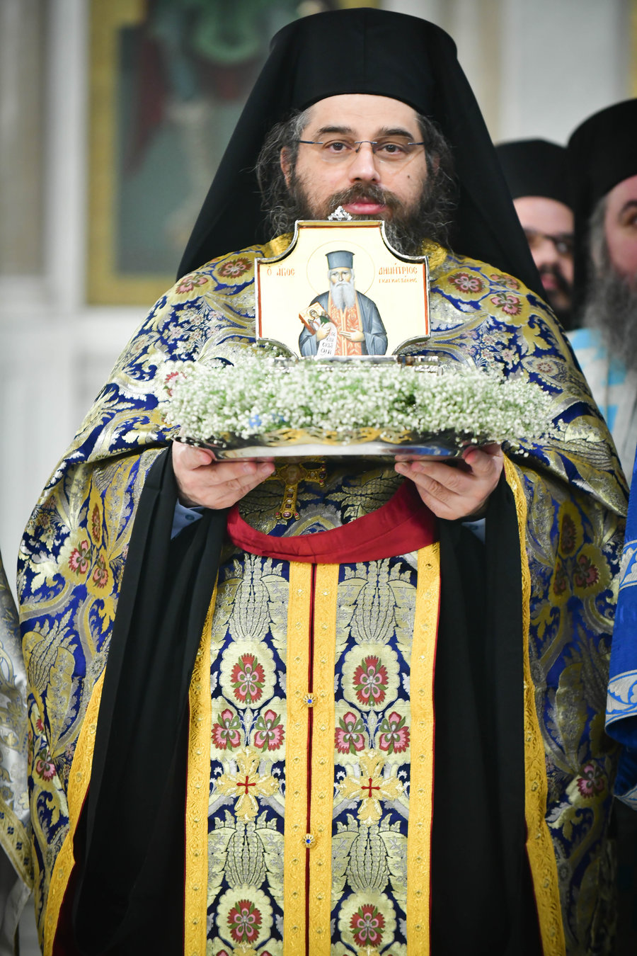 Προ της απολύσεως του Εσπερινού, ο Σεβασμιώτατος πραγματοποίησε την κοπή της πατροπαράδοτης Αγιοβασιλειόπιτας για τους υπευθύνους κληρικούς και τα μέλη των Ενοριακών Φιλοπτώχων Ταμείων της Ιεράς Μητροπόλεως Σερρών και Νιγρίτης, των συνεργείων του «Εράνου Αγάπης» και για τα μέλη, που εθελοντικώς διακονούν στο Κοινωνικό Συσσίτιο, Ιατρείο, Φαρμακείο και Παντοπωλείο, προσέφερε δε στον ιερό Μητροπολιτικό και Αρχαγγελικό Ναό των Σερρών, κατ’ ιδίαν φιλοτιμία και προαίρεση, απότμημα εκ των χαριτοφόρων λειψάνων του εκ Πλατάνου Τρικάλων καταγομένου νέου αγίου της Εκκλησίας μας, Δημητρίου του φιλαγγέλου (Γκαγκαστάθη, +1975), ως μόνιμο σημείο ευλογίας και αγιασμού των πιστών. Το χαριτόβρυτο αυτό ιερολειψανικό θησαύρισμα, αποθησαυρισμένο στην ιερά Μονή Αγ. Ιωάννου Θεολόγου Ζάρκου Τρικάλων εδωρήθη προφρόνως από την σεβαστή Ηγουμένη της εν λόγω Μονής, Γερόντισσα Ισιδώρα, με την άδεια και ευλογία του φιλαγίου και σεπτού Ποιμενάρχου της Εκκλησίας των Τρικκαίων, Σεβ. Μητροπολίτου Τρίκκης, Γαρδικίου και Πύλης κ. Χρυσοστόμου στον Σεβ. Μητροπολίτη Σερρών και Νιγρίτης κ. Θεολόγο και αποτελεί πλέον, όπως χαρακτηριστικώς εσημείωσε ο Σεβασμιώτατος, τιμαλφέστατο πνευματικό θησαυρό του ιερού Μητροπολιτικού Ναού, μόνιμη και απτή πηγή αγιασμού, δοχείο χωρητικό και παρεκτικό της αγιάζουσας και σώζουσας τον άνθρωπο, θείας χάριτος.