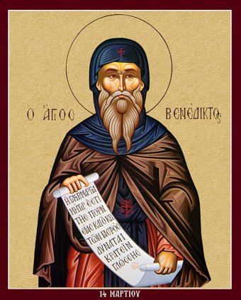 Ὁ Ὅσιος Βενέδικτος γεννήθηκε στὴ Νουρσία τῆς Ἰταλίας καὶ ἔζησε τὸν 6ο αἰῶνα μ.Χ. Οἱ γονεῖς του ἦταν εὐγενεῖς καὶ πλούσιοι, ἀλλὰ καὶ ἀφοσιωμένα τέκνα τῆς Ἐκκλησίας. Γι᾿ αὐτὸ καὶ στὸ παιδί τους, μὲ ἀγάπη καὶ ταπεινὸ φρόνημα, ἐφάρμοσαν τὴν διαπαιδαγώγηση ποὺ συνιστᾷ ὁ λόγος τοῦ Θεοῦ: «Ἐκτρέφετε αὐτὰ ἐν παιδείᾳ καὶ νουθεσίᾳ Κυρίου». Ν᾿ ἀνατρέφετε, δηλαδή, τὰ παιδιά σας, μὲ παιδαγωγία καὶ νουθεσία, σύμφωνα μὲ τὸ θέλημα τοῦ Κυρίου. Ἔτσι καὶ οἱ γονεῖς αὐτοὶ ἀνέθρεψαν τὸ γιό τους Βενέδικτο μὲ θερμότατη εὐσέβεια καὶ φρόντισαν νὰ τοῦ ἀνάψουν τὸ ζῆλο νὰ ἐργασθεῖ σὲ κάτι μεγάλο καὶ καλὸ ὑπὲρ τῆς Ἐκκλησίας. Ὁ Βενέδικτος ὅταν ἐνηλικιώθηκε, πράγματι ἀνταποκρίθηκε στὶς προσδοκίες τῶν γονέων του. Ἀφοῦ ἀποχώρησε σ᾿ ἕνα φαράγγι στὰ Ἀπέννινα ὄρη, ἐπιδόθηκε στὴν προσευχὴ καὶ τὴν μελέτη. Ἡ τόσο ἁγία ζωὴ ποὺ ἔκανε, ἔγινε αἰτία νὰ ἀποκτήσει μεγάλη φήμη στοὺς γύρω ὀρεινοὺς πληθυσμούς. Μέσα σὲ διάστημα εἴκοσι χρόνων, ἦλθαν κοντά του 164 μοναχοί. Ὁπότε τὸ ἔτος 540 ἵδρυσε μοναστήρι, ἐπάνω στὸ ὄρος CASSΙNO. Ὑπῆρξε Ἱδρυτὴς τοῦ μοναχικοῦ τάγματος τῶν Βενεδικτίνων, ποὺ ὑπάρχει μέχρι καὶ σήμερα στὴ δυτικὴ Ἐκκλησία. Ὁ Ὅσιος Βενέδικτος πέθανε εἰρηνικὰ τὸ ἔτος 543, σὲ ἡλικία 62 χρονῶν.