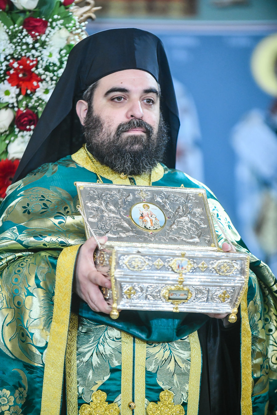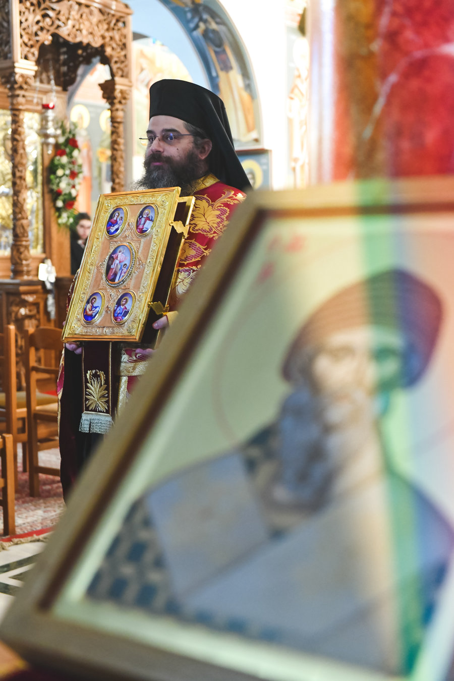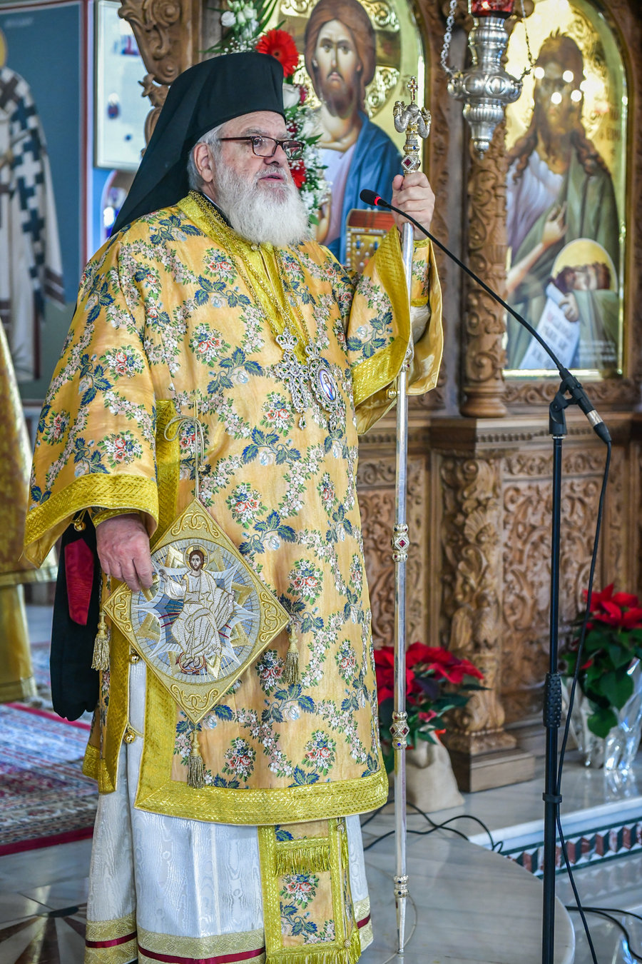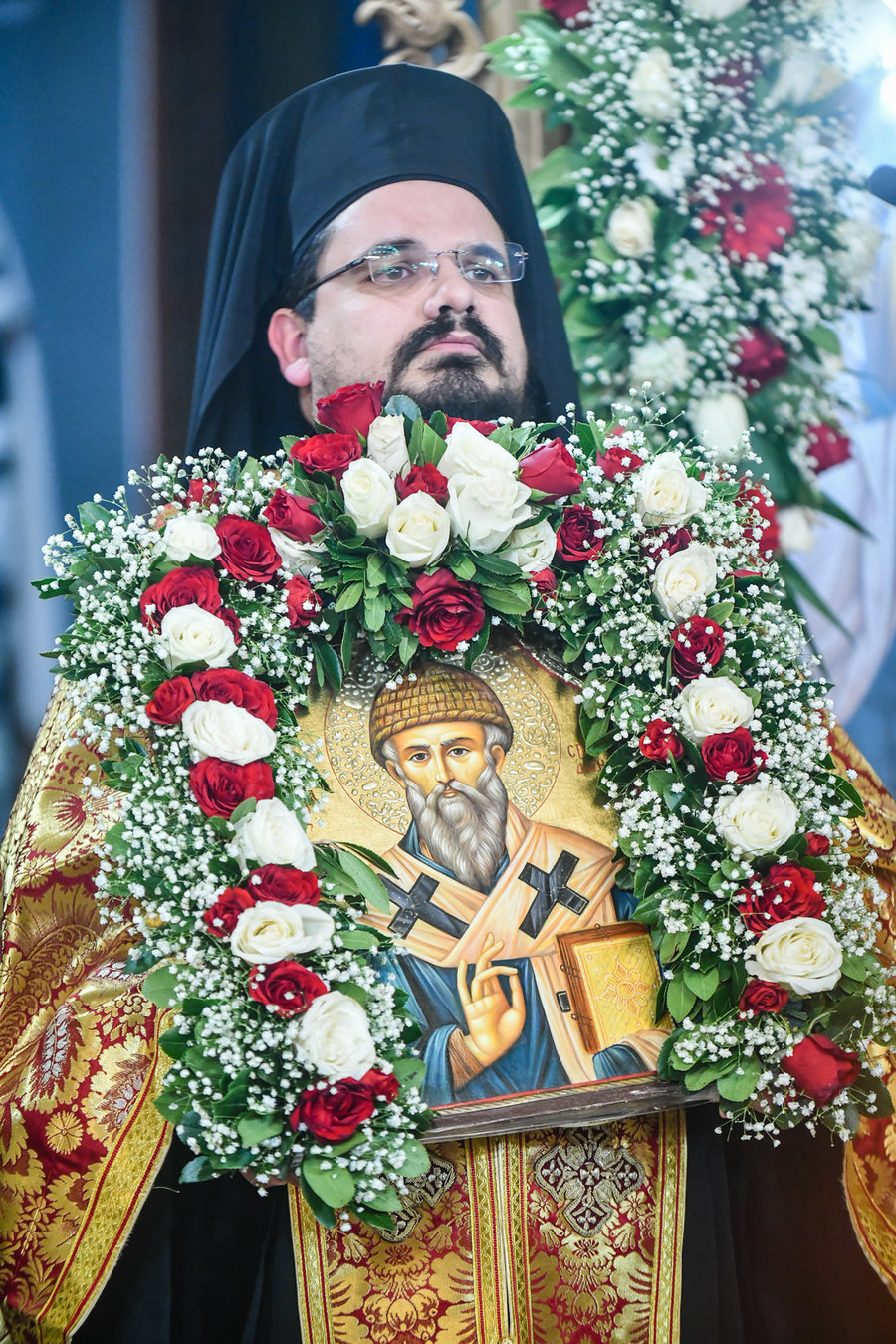 Προ της απολύσεως της πανηγυρικής θ. Μυσταγωγίας, ο Σεβ. Μητροπολίτης Βρεσθένης κ. Θεόκλητος, διηκόνησε με πνευματικό παλμό και θεολογική ενάργεια την ιερουργία του θείου κηρύγματος, αναφερθείς με γλαφυρούς λόγους στον σήμερον λαμπρώς εορταζόμενο άγιο της ταπεινώσεως, της χριστιανικής αγάπης και της ελεημοσύνης, τον θείο Σπυρίδωνα, απευθύνοντας, εκ παραλλήλου, εγκάρδιες ευχαριστίες προς τον αρχοντικό, ως ετόνισε, ευγενή, ευπροσήγορο, κατά πάντα  άξιο, σεμνό, ιεροπρεπή και μεστό πίστεως και αγάπης, με θαυμαστή και πολύπλευρη εκκλησιαστική, εθνική και κοινωνική προσφορά, Σεβ. Ποιμενάρχη της Σερραϊκής Εκκλησίας κ. Θεολόγο.