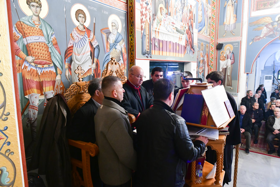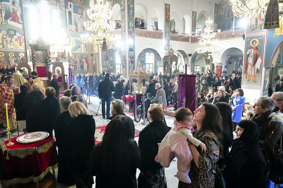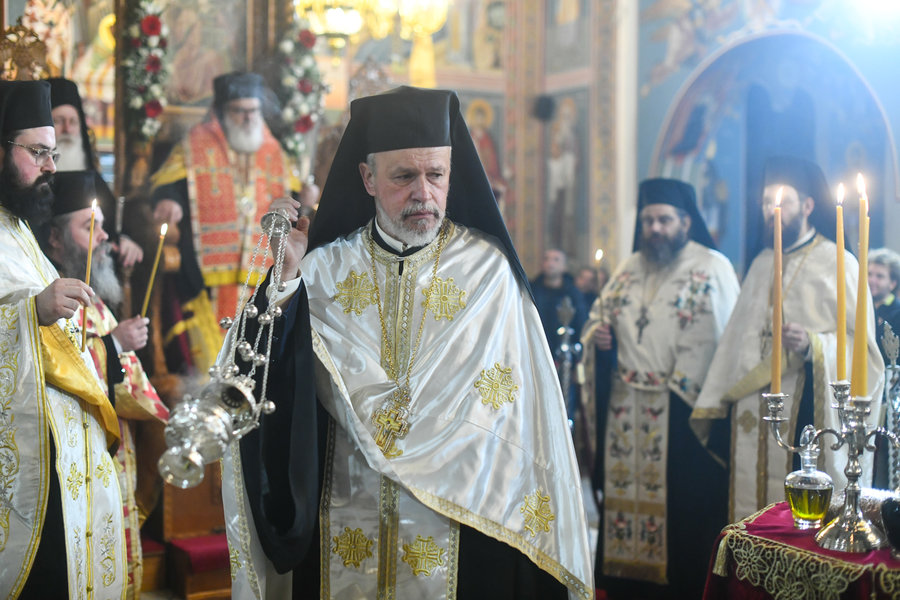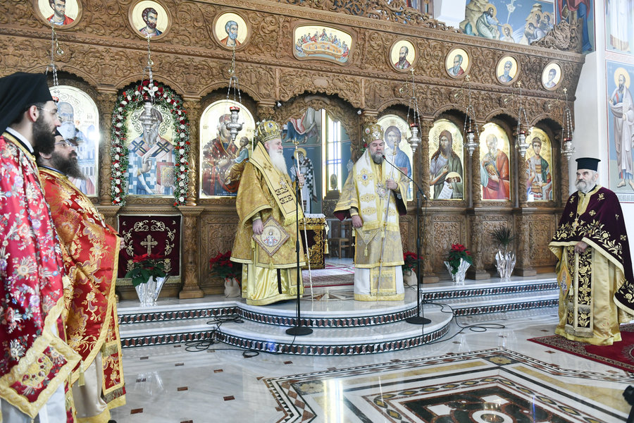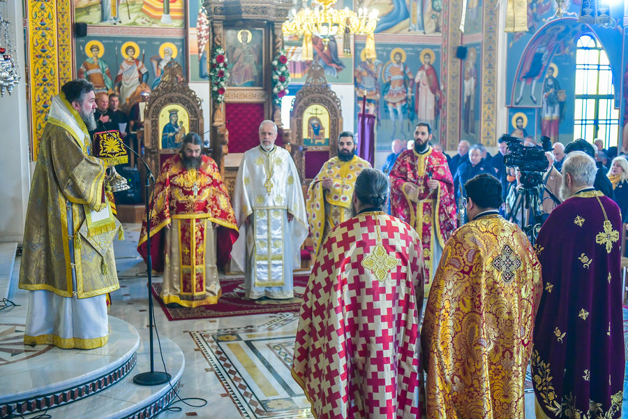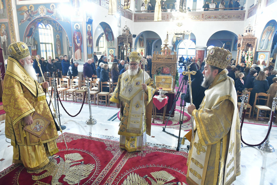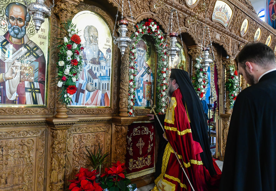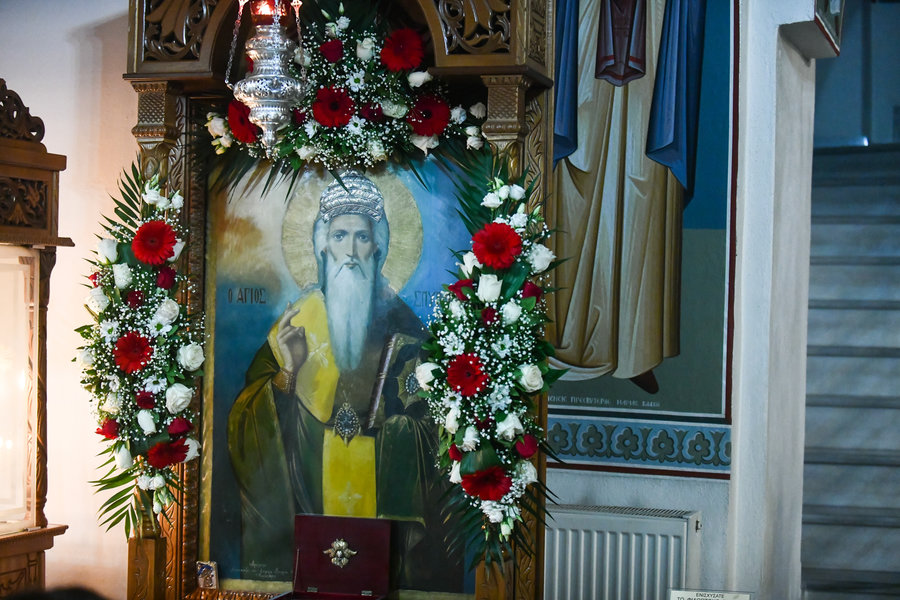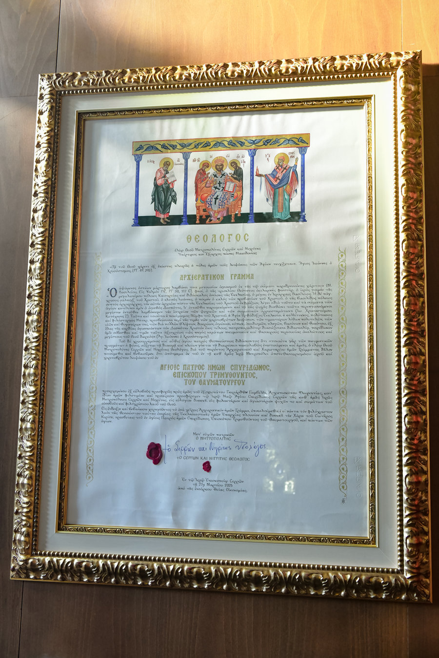 Στον εορτάζοντα, νεόδμητο ιερό Ναό, επ’ ονόματι του Αγ. Σπυρίδωνος, Επισκόπου Τριμυθούντος, στην συνοικία Νέας Κηφισιάς Σερρών, τελέσθηκε πανηγυρικό, Αρχιερατικό συλλείτουργο προεξάρχοντος του Σεβ. Μητροπολίτου Βρεσθένης κ. Θεοκλήτου, Διευθυντού του Ιστορικού Αρχείου της Ιεράς Συνόδου της Εκκλησίας της Ελλάδος και συνιερουργησάντων του Θεοφ. Επισκόπου Βελίκης κ. Σιωνίου, Ηγουμένου της παλαιφάτου Συνοδικής Μονής Μπάτσκοβο της Βουλγαρικής Εκκλησίας και του οικείου Ποιμενάρχου Σερρών και Νιγρίτης κ. Θεολόγου, σήμερα, Παρασκευή 12 Δεκεμβρίου 2025, ημέρα κατά την οποία, η αγία Ορθόδοξος Εκκλησία μας τιμά λειτουργικώς την πανσεβάσμιο μνήμη του μεγάλου προμάχου της πίστεώς μας, θαυματουργού Αγ. Σπυρίδωνος.