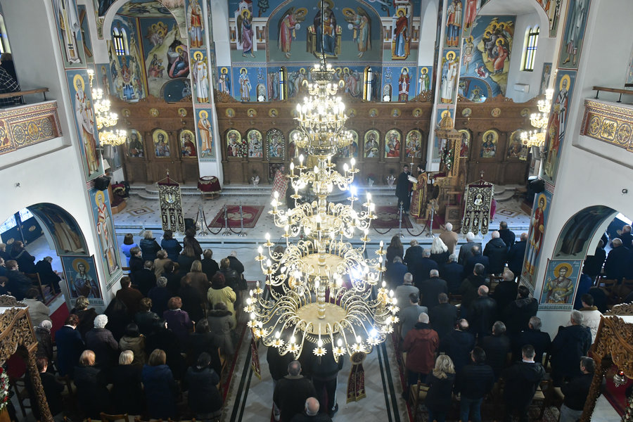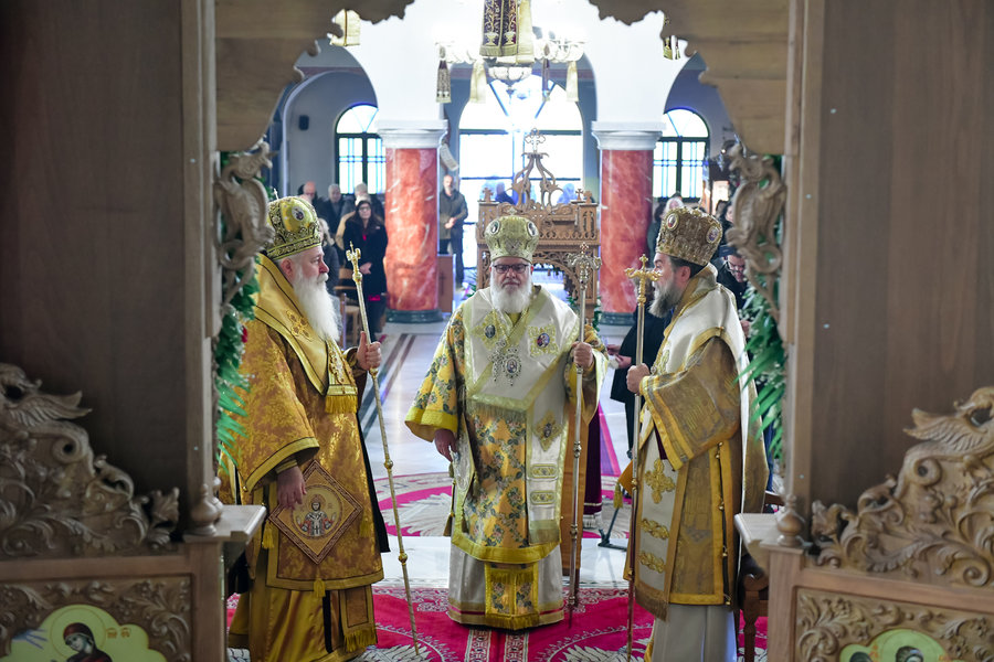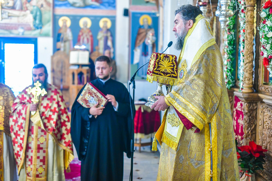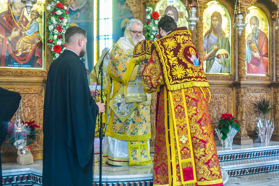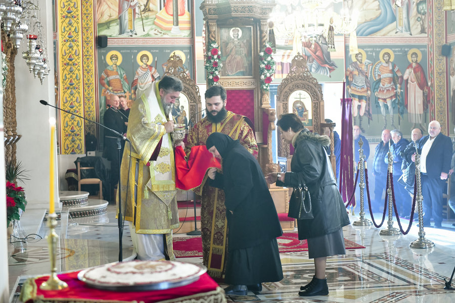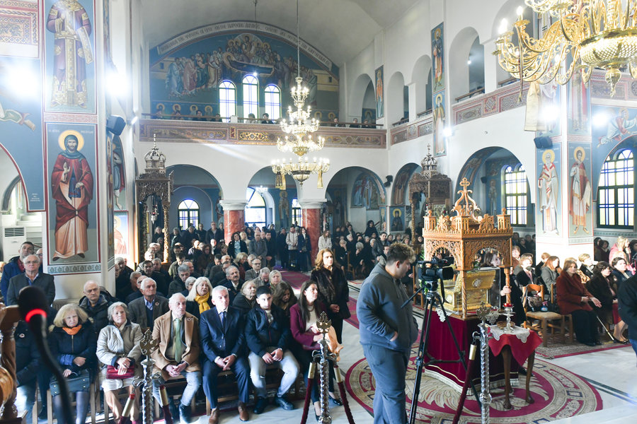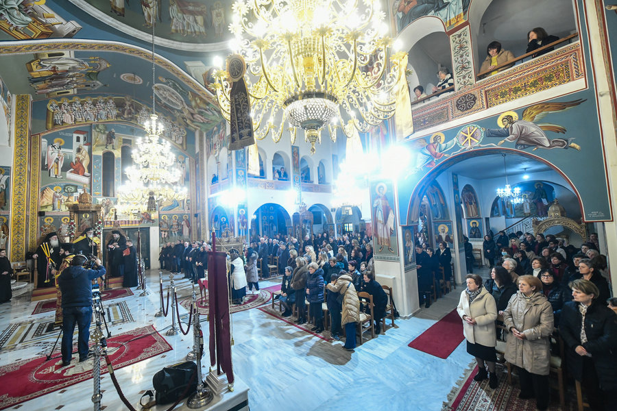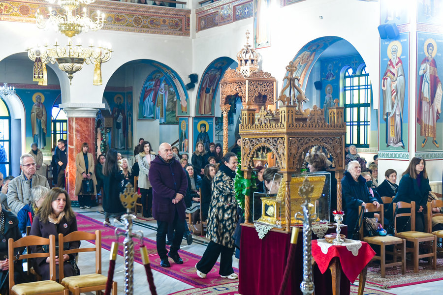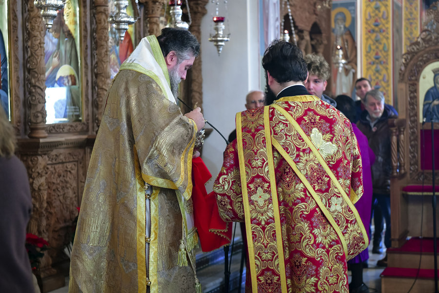 Στον εορτάζοντα, νεόδμητο ιερό Ναό, επ’ ονόματι του Αγ. Σπυρίδωνος, Επισκόπου Τριμυθούντος, στην συνοικία Νέας Κηφισιάς Σερρών, τελέσθηκε πανηγυρικό, Αρχιερατικό συλλείτουργο προεξάρχοντος του Σεβ. Μητροπολίτου Βρεσθένης κ. Θεοκλήτου, Διευθυντού του Ιστορικού Αρχείου της Ιεράς Συνόδου της Εκκλησίας της Ελλάδος και συνιερουργησάντων του Θεοφ. Επισκόπου Βελίκης κ. Σιωνίου, Ηγουμένου της παλαιφάτου Συνοδικής Μονής Μπάτσκοβο της Βουλγαρικής Εκκλησίας και του οικείου Ποιμενάρχου Σερρών και Νιγρίτης κ. Θεολόγου, σήμερα, Παρασκευή 12 Δεκεμβρίου 2025, ημέρα κατά την οποία, η αγία Ορθόδοξος Εκκλησία μας τιμά λειτουργικώς την πανσεβάσμιο μνήμη του μεγάλου προμάχου της πίστεώς μας, θαυματουργού Αγ. Σπυρίδωνος.
