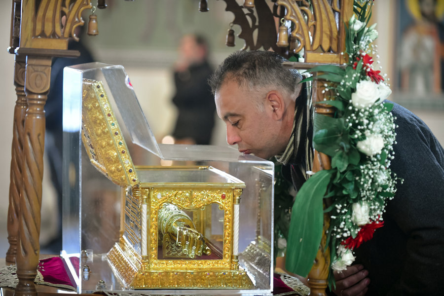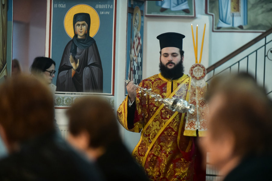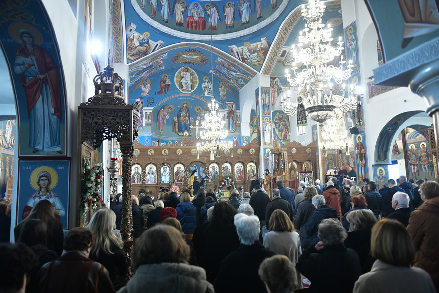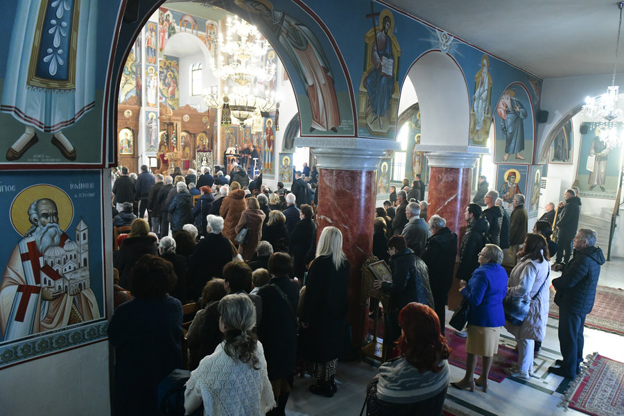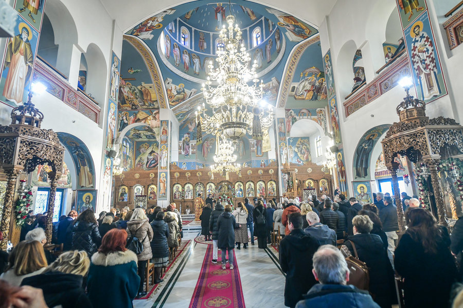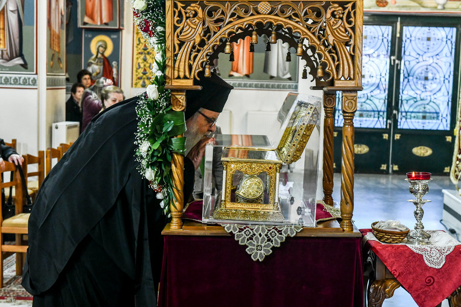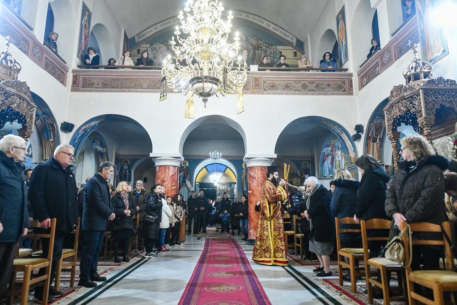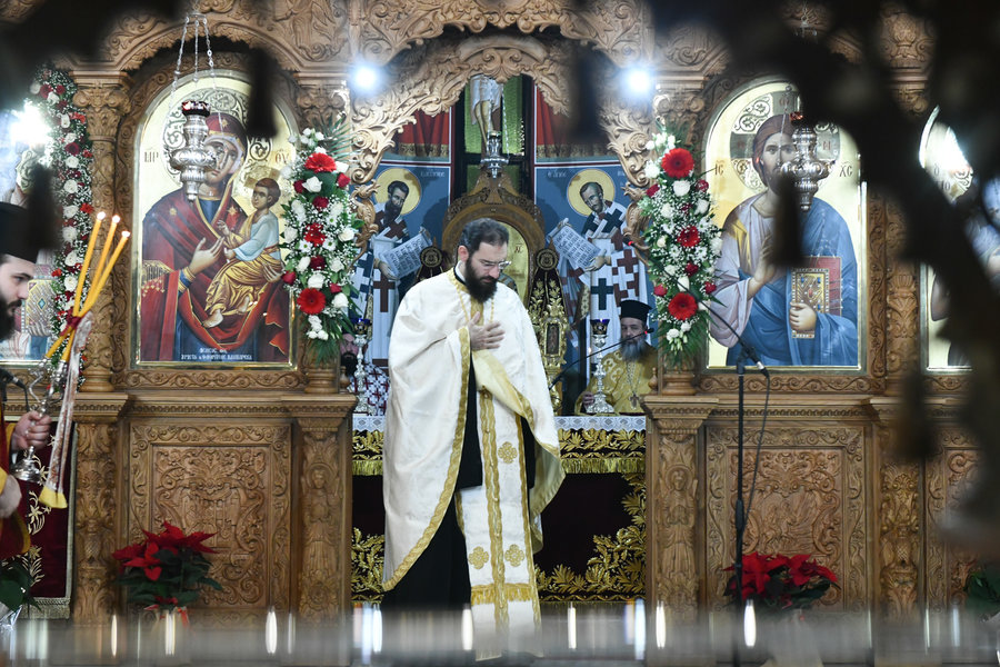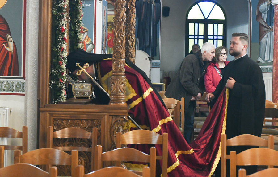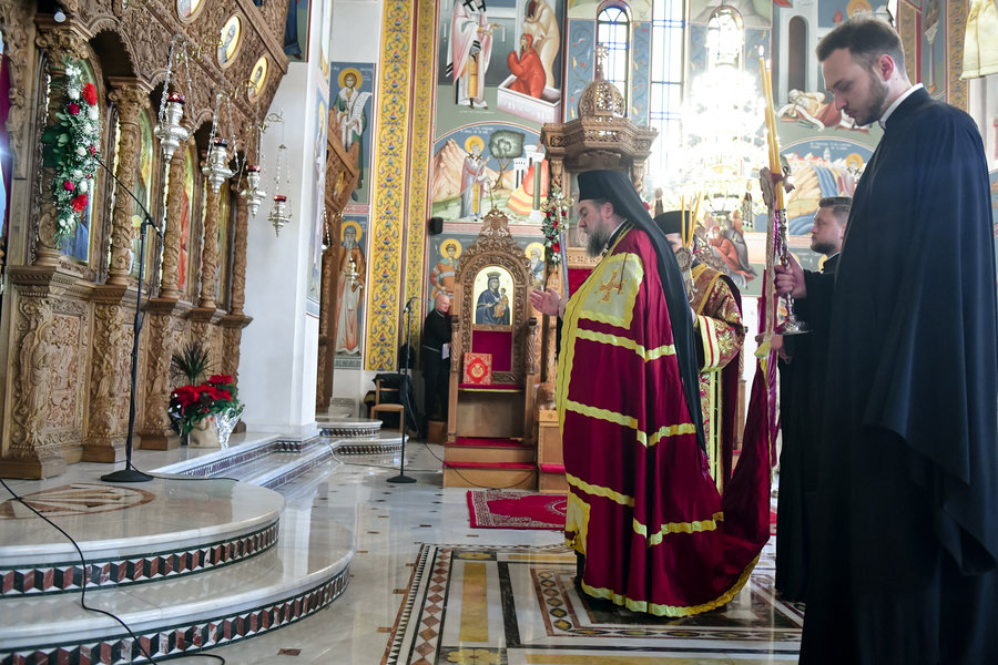 Στον εορτάζοντα, νεόδμητο ιερό Ναό, επ’ ονόματι του Αγ. Σπυρίδωνος, Επισκόπου Τριμυθούντος, στην συνοικία Νέας Κηφισιάς Σερρών, τελέσθηκε πανηγυρικό, Αρχιερατικό συλλείτουργο προεξάρχοντος του Σεβ. Μητροπολίτου Βρεσθένης κ. Θεοκλήτου, Διευθυντού του Ιστορικού Αρχείου της Ιεράς Συνόδου της Εκκλησίας της Ελλάδος και συνιερουργησάντων του Θεοφ. Επισκόπου Βελίκης κ. Σιωνίου, Ηγουμένου της παλαιφάτου Συνοδικής Μονής Μπάτσκοβο της Βουλγαρικής Εκκλησίας και του οικείου Ποιμενάρχου Σερρών και Νιγρίτης κ. Θεολόγου, σήμερα, Παρασκευή 12 Δεκεμβρίου 2025, ημέρα κατά την οποία, η αγία Ορθόδοξος Εκκλησία μας τιμά λειτουργικώς την πανσεβάσμιο μνήμη του μεγάλου προμάχου της πίστεώς μας, θαυματουργού Αγ. Σπυρίδωνος.