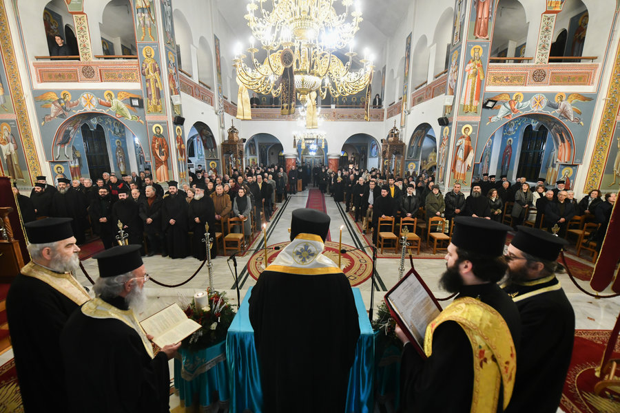 Επίκεντρο του λειτουργικού εορτασμού της λαμπράς και μεγαλειώδους αυτής εορτής της αγίας πίστεώς μας, στην Εκκλησία των Σερρών, απετέλεσε ο ιερός Μητροπολιτικός Ναός Παμμ. Ταξιαρχών, όπου, αφ’ εσπέρας της εορτής, Δευτέρα 5 Ιανουαρίου 2026, τελέσθηκε ο μέγας πανηγυρικός Εσπερινός, χοροστατήσαντος του Σεβ. Μητροπολίτου Σερρών και Νιγρίτης κ. Θεολόγου. Την διακονία του λόγου με την ευλογία του Σεβασμιωτάτου ανέλαβε ο πανοσιολ. Αρχιμανδρίτης π. Δαυΐδ Σταυρινός, Πρόεδρος του εκκλησιαστικού Συμβουλίου του ιερού Ναού Ευαγγελιστρίας Σερρών, ο οποίος αναφέρθηκε στο νόημα της μεγάλης εορτής των Θεοφανείων, ως φανέρωση του μυστηρίου της Αγ. Τριάδος κατά την Βάπτιση του Κυρίου μας Ιησού Χριστού στον Ιορδάνη ποταμό, αλλά και ως απαρχή του χριστιανικού βαπτίσματος διά του οποίου ο άνθρωπος γίνεται τίμιο μέλος της Εκκλησίας.