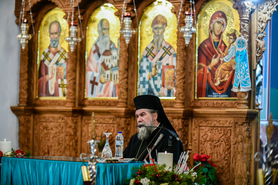 «Η σχέση Επισκόπου με τους κληρικούς του και τους λαϊκούς συνεργάτες της Εκκλησίας μας, είπε ο Σεβασμιώτατος, είναι μία σχέση ιερή, εξαγιασμένη από τον ίδιο τον Κύριό μας, μία σχέση γεμάτη Χριστό, στοργή, ενδιαφέρον, αγάπη, αλληλοπεριχώρηση, κατανόηση, με ξεκάθαρο αγιοπνευματικό και εκκλησιολογικό υπόβαθρο και θεμέλιο. Η κοινωνία αυτή δεν εξαντλείται μόνον σε διοικητικές αποφάσεις και υπηρεσιακές συνεργασίες, αλλά φανερούται και ολοκληρούται πρωτίστως συλλειτουργικώς και προσευχητικώς πέριξ του ιερού θυσιαστηρίου, απ’ όπου αναβλύζουν αενάως όλες οι ευλογίες του Θεού. Είναι έργο μαρτυρίας Ιησού Χριστού στον κόσμο. Δι’ αυτού του τρόπου, ο Θεός δοξάζεται, η Εκκλησία στολίζεται, η ενότητα διασώζεται, το έργο καρποφορεί, η μαρτυρία πιστοποιείται, ο λαός του Θεού αισθάνεται αναπαυμένος και ασφαλής».