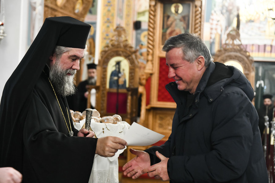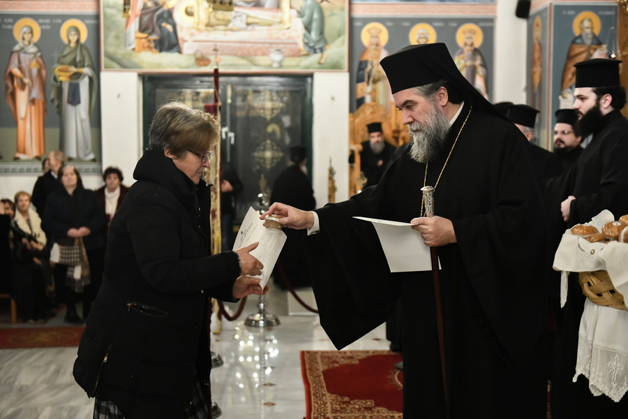 Ο πρώτος από αυτούς έλαβε, ως ευλογία έναν χρυσό σταυρό, ενώ σε όλους ο Σεβασμιώτατος χάρισε μαζί με την ευλογία του και από μία εικόνα, ακριβές αντίγραφο της Παναγίας «ΠΟΝΟΛΥΤΡΙΑΣ», της Οποίας το χαριτόβρυτο και θαυματουργό, ανάγλυφο εικόνισμα (11ος μ.Χ. αιών.) φυλάσσεται στον ιερό Καθεδρικό και Προσκυνηματικό Ναό Αγ. Θεοδώρων Σερρών, ευχόμενος χρόνια πολλά, ευλογημένα, φωτισμένα και άγια.