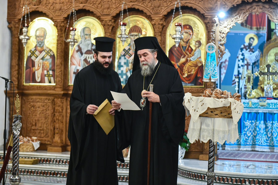 Τέλος, ο Σεβασμιώτατος επέδωσε τα διοριστήρια έγγραφα στους εκκλησιαστικούς Συμβούλους και διένειμε τα τεμάχια της ευλογημένης Αγιοβασιλειόπιτας, επικαλούμενος σε όλους δαψιλή την χάρη και την ευλογία του αγίου Θεού.
